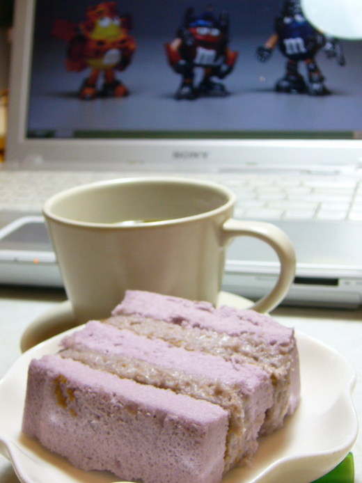 店員說,「剛好剩最後一條。」我拿出跑新聞的速度,以一個箭步衝向冷藏櫃──比後面那名穿吊尬仔的壯漢還快,第一次覺得自己像歐巴桑(事實上也已經是),我得到了最後一條芋泥蛋糕,這絕對比搶得第一條還要興奮。