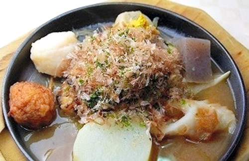 據朝日新聞報導,此地一家名為「紐約」的漢堡專賣店,就將靜岡具有代表性的竹輪、蒟蒻塊等八種關東煮與漢堡肉一起,成了「漢堡關東煮」。而將牛絞肉與法國麵包混合而成漢堡肉,再淋上勾芡的玉米醬就成了「玉米漢堡餐」。另有一家義大利餐廳,把漢堡夾在米餅內,而絞肉內則加入了秘密武器──靜岡特產白蔥,口感馬上加分。