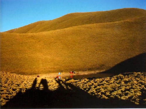 窩在睡袋裡,又被帳棚外銀輝的光亮所誘惑,走出來欣賞月色.