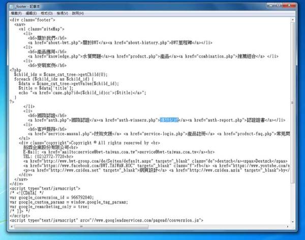 四、修改完後,儲存檔案,確認檔案名稱是否跟下載時檔名相同(附圖範例檔案:_footer.php),再將此檔案上傳至FTP覆蓋原本的檔案就完成了!