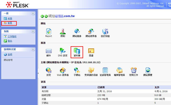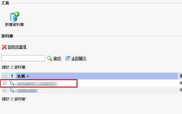 Step02 : 登入後選擇左邊選單的”首頁” , 點選資料庫選項進入