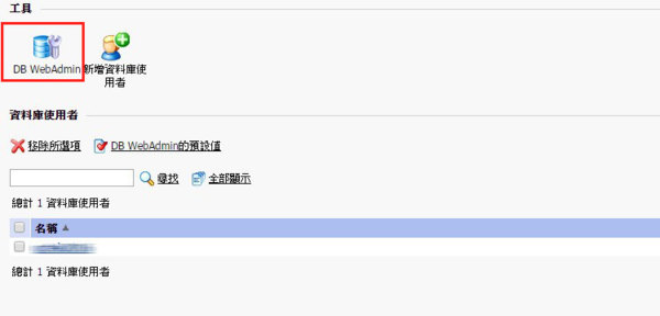 Step04 : 點選工具列的 “DB WebAdmin”進入DB資料庫管理介面