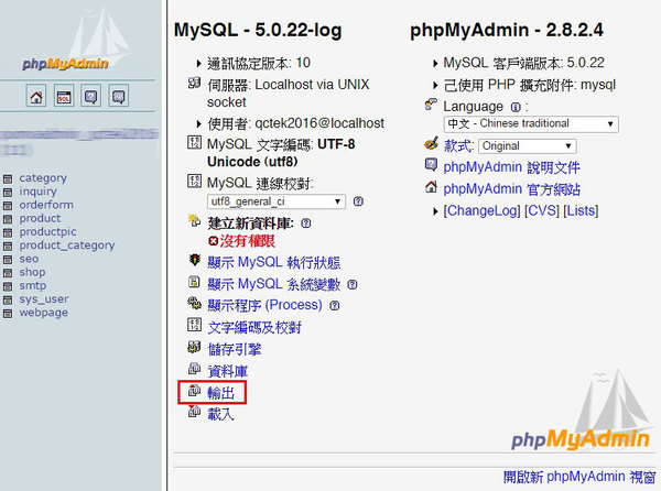 Step06 : 在phpMyAdmin介面裡 , 點選”輸出”的按鈕