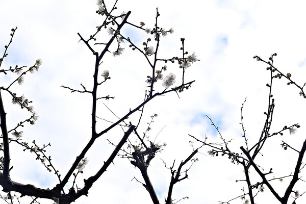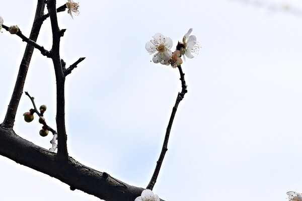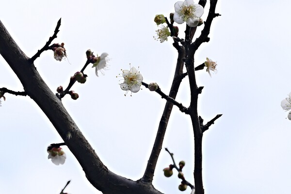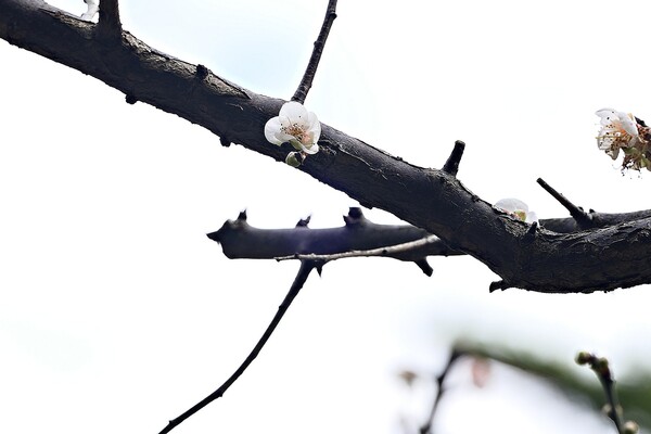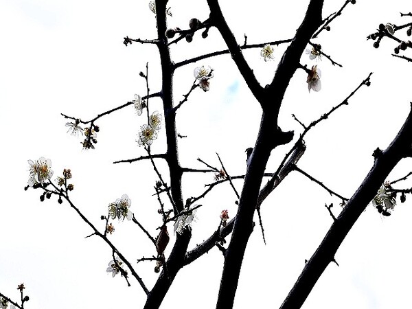 95翁我一週前摔一跤,肋骨斷裂三根,刺痛在背....今天慢慢去中正紀念堂走走,隨手拍瞭幾朵梅花,很累,不美,看官文有看得刺眼,罵罵老頭,我沒聽到...沒代誌