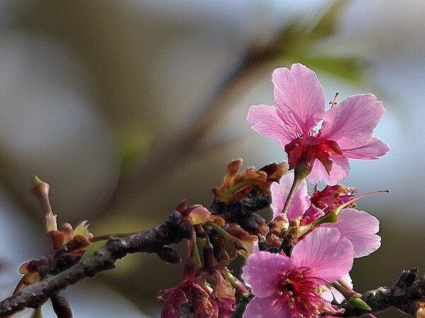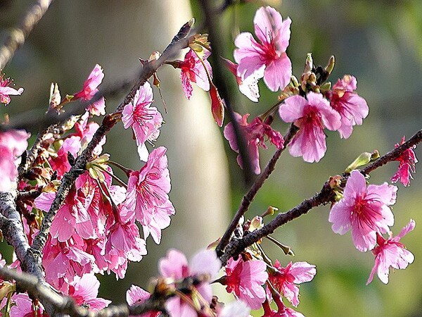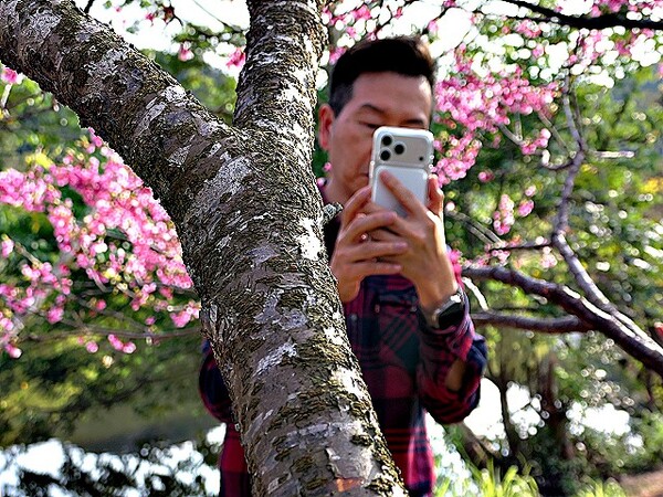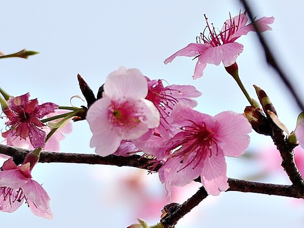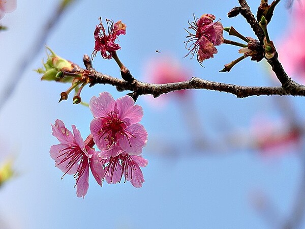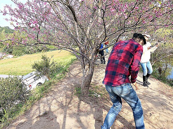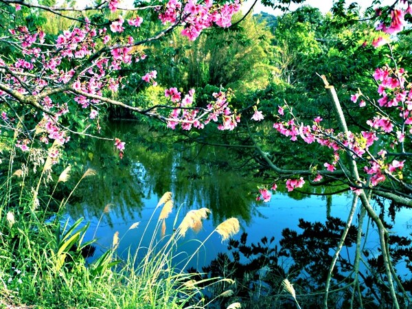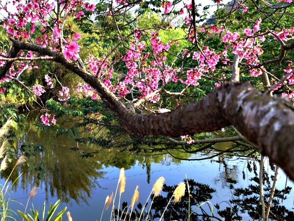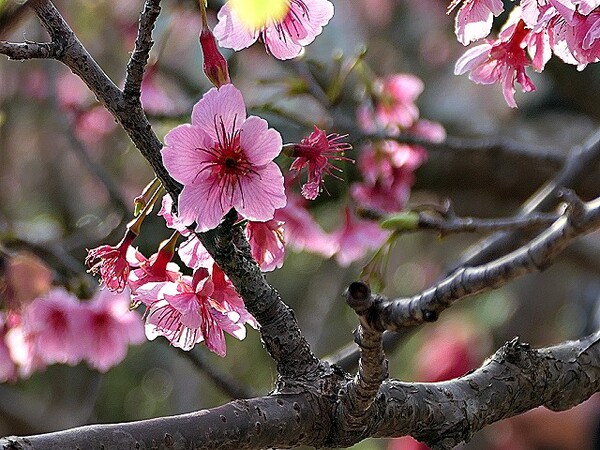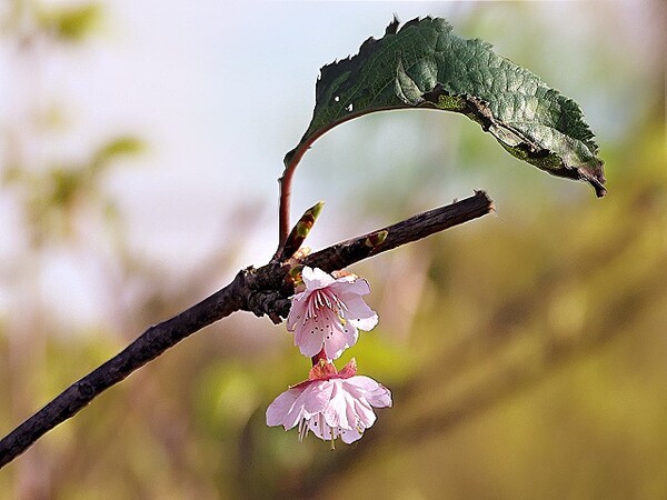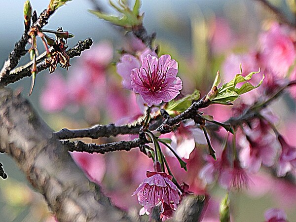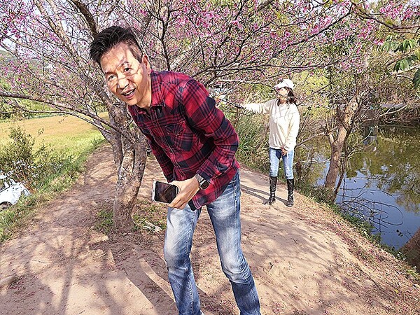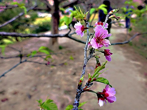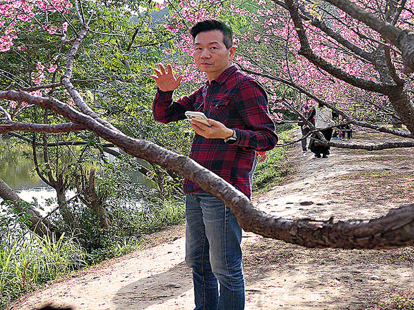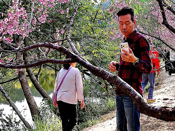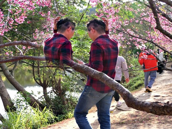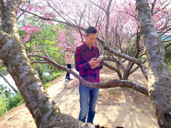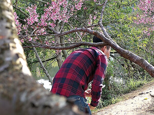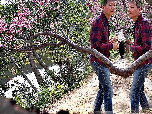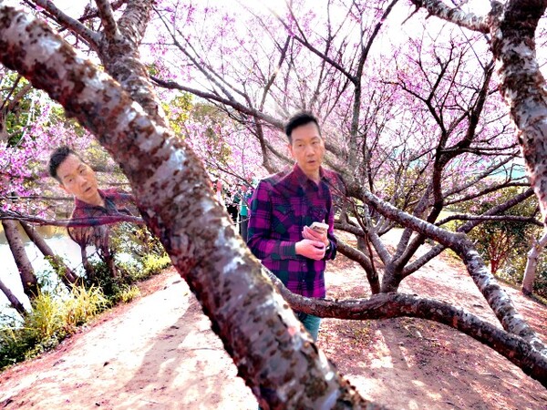 二月十日仨兒守安,照例載95歲爸我溜溜山野,彼此在櫻花樹下,彎腰蹲著走來走去,彼此叫一聲:"這朵好看!"各角度按下快門,偶而還彼此看看剛摘的花,嘻嘻哈哈,彼此也會找咖啡棧休閒,坐著癡癡癡遠望,久久....