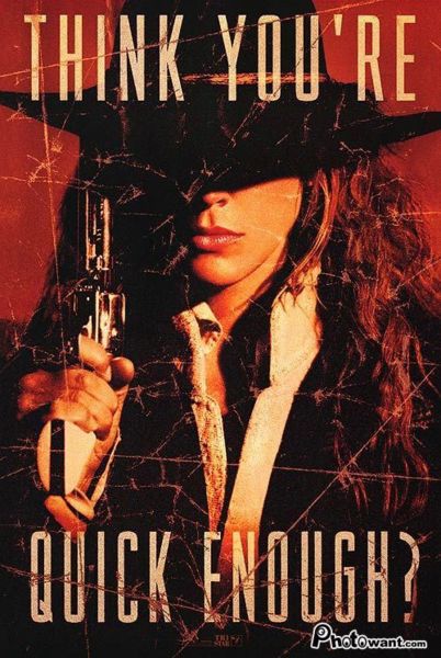 美式西部片猶如目今之港片,有將女性演員當實質主角者,人們往往形容這類不以女性演員作「主角」的電影,係屬以女性為「花瓶」陪襯、旁配的電影;而且該型影片常易流露以男性觀點、視野環顧人世的意識色彩,予倡男女平權人士有欠缺女性心田深處關懷、感觸之譏。但本片“THE QUICK AND THE DEAD”不再將西部片中的女性侷限於「弱者」-貴婦、淑女、村婦小女孩、身世可憐婦人,甚至娼妓、蕩女的角色猶如花瓶、配件、裝飾品般聊具一格;劇中人愛蓮小姐「靜如處子、動如脫兔」,動靜兼勝、柔中帶剛,憑聰慧智謀、正義氣慨、及精湛槍法,為父復仇、除暴安良、重建小鎮秩序,洵可謂巾幗英豪範式。她不再是「跑龍套」的配角、小旦,已儼然全戲之主角、台柱矣。片中多次有鎮上遊民、無賴欲以言詞「虧」她,向其用言詞佔便宜,反被其一番「唇槍舌戰」倒「虧」回來。而鎮上「人渣」闕有慶在侵犯少女凱蒂的性決定自由,奪走她童真、貞操後,尚自吹自擂、向眾人誇耀他的「功夫」,言辭中充滿輕蔑女性之語;引發愛蓮「人溺己溺」之悲憫胸懷、女性憤怒,遂與那妓院老闆提早比槍于大雷雨中。片中並似以愛蓮將闕有慶「去勢」,象徵消滅男人「沙文主義」之意識及男、女間「均勢」平權;而那「人渣」的酒館偷襲,與愛蓮的適時「反擊」,似又意味女性自我為權利爭之時趨以及父系威權體制之嘲諷(從愛蓮與凱蒂在片中之對話裡,亦可感受)。