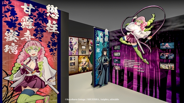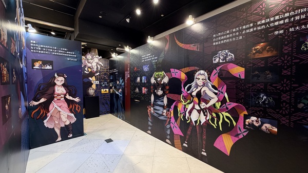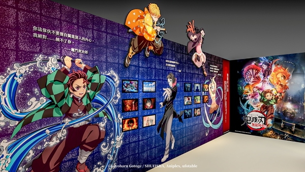 展區集結《竈門炭治郎立志篇》、《無限列車篇》、《遊郭篇》、《刀匠村篇》及《柱訓練篇》各季TV動畫的動人台詞與精采畫面,鬼殺隊最高戰力九柱的等身立牌,無限列車篇中炭治郎使出「火之神神樂 碧羅之天」斬向魘夢脊骨的經典戰鬥場景,邁向無限城展區中鏡面交錯的反射身影,以及無慘、黑死牟、童磨、猗窩座、鳴女齊聚,以無限城進行設計的商售區,絕對都是攻佔粉絲手機記憶體的必拍畫面。