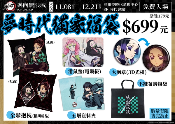 《鬼滅之刃》邁向無限城快閃店 前進南臺灣 與高雄粉絲相會 夢時代8F時代會館 獨家福袋 全新商品 快來和碧羅之天合影留念