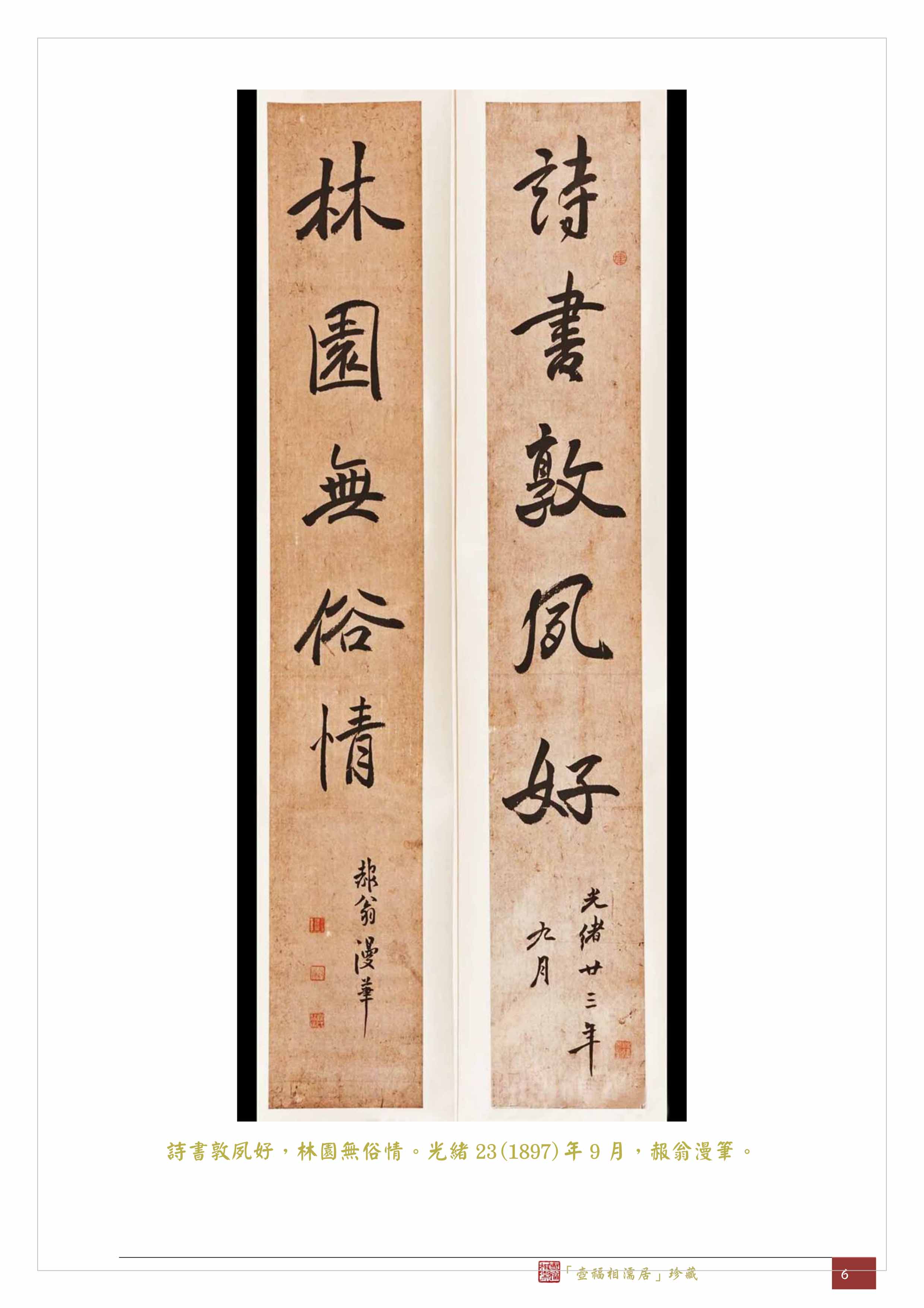 詩書敦夙好,林園無俗情。光緒23(1897)年9月,赧翁漫筆。