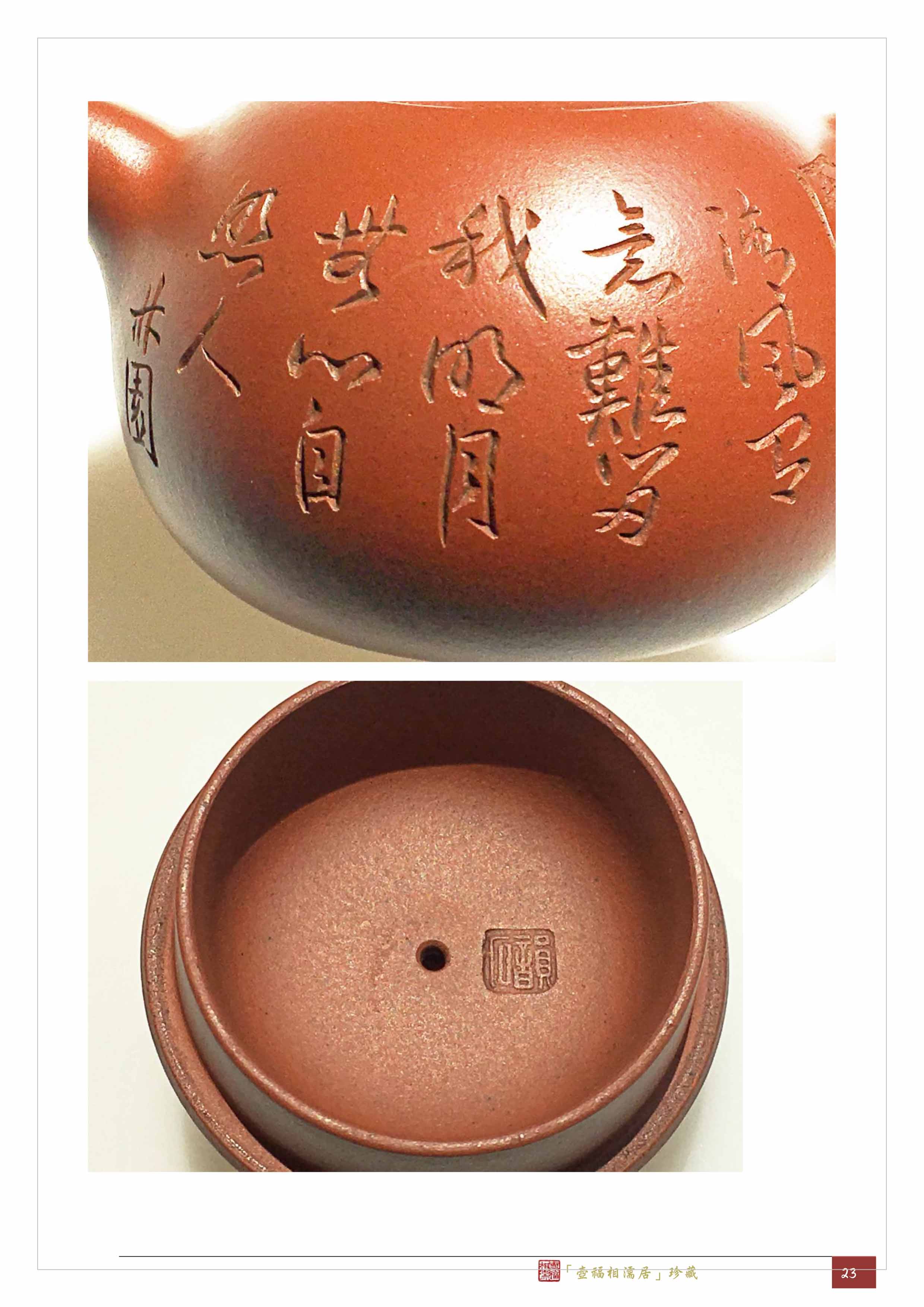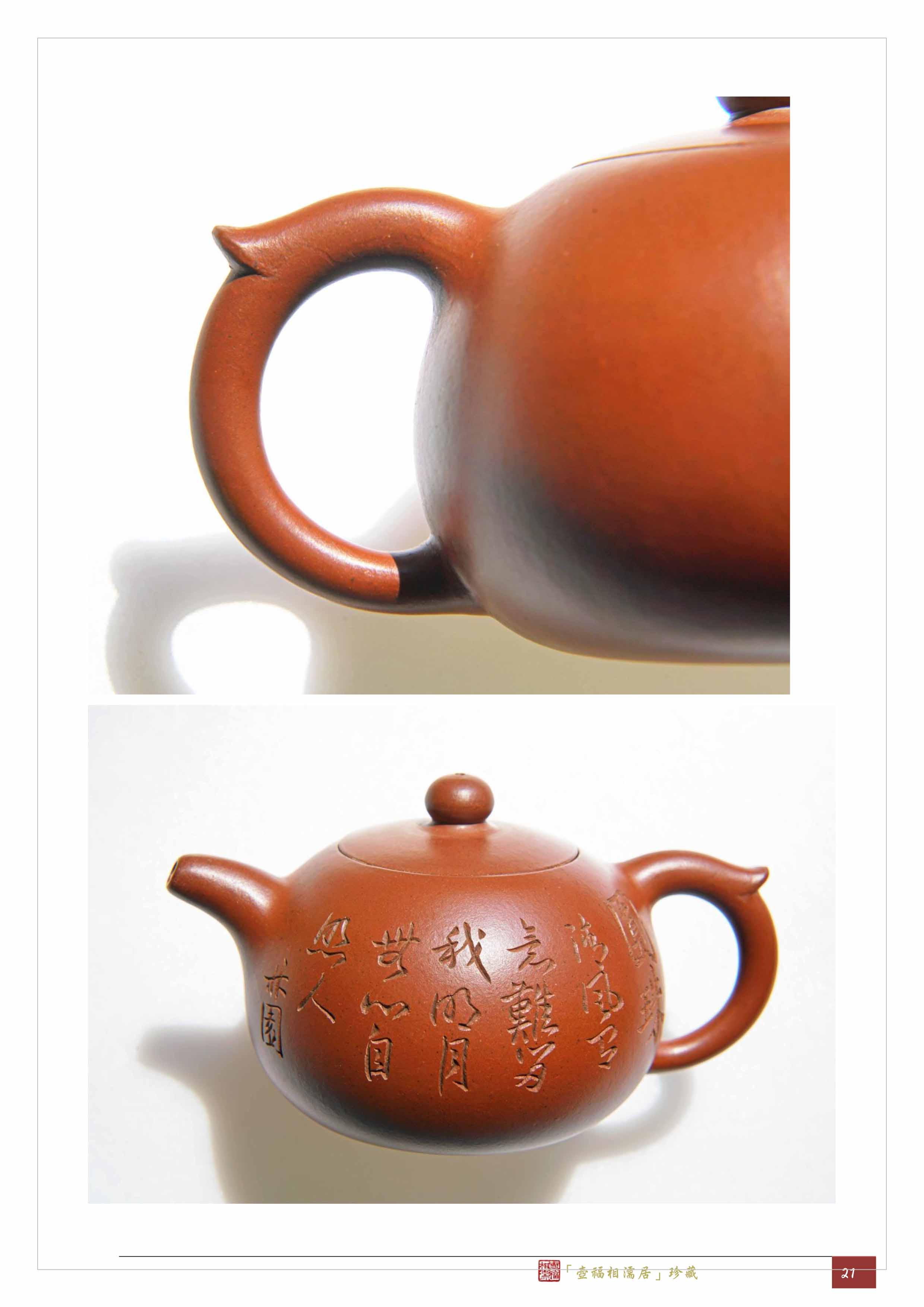 結論:這把圓珠壺是何心舟製作,林園作坊設計、銘刻,適合盈盈一握一個人獨飲的袖珍形紫砂圓壺,壺上的書法精妙,銘文的意境悠遠,是把符合玉成窯鑑識標準的好壺。