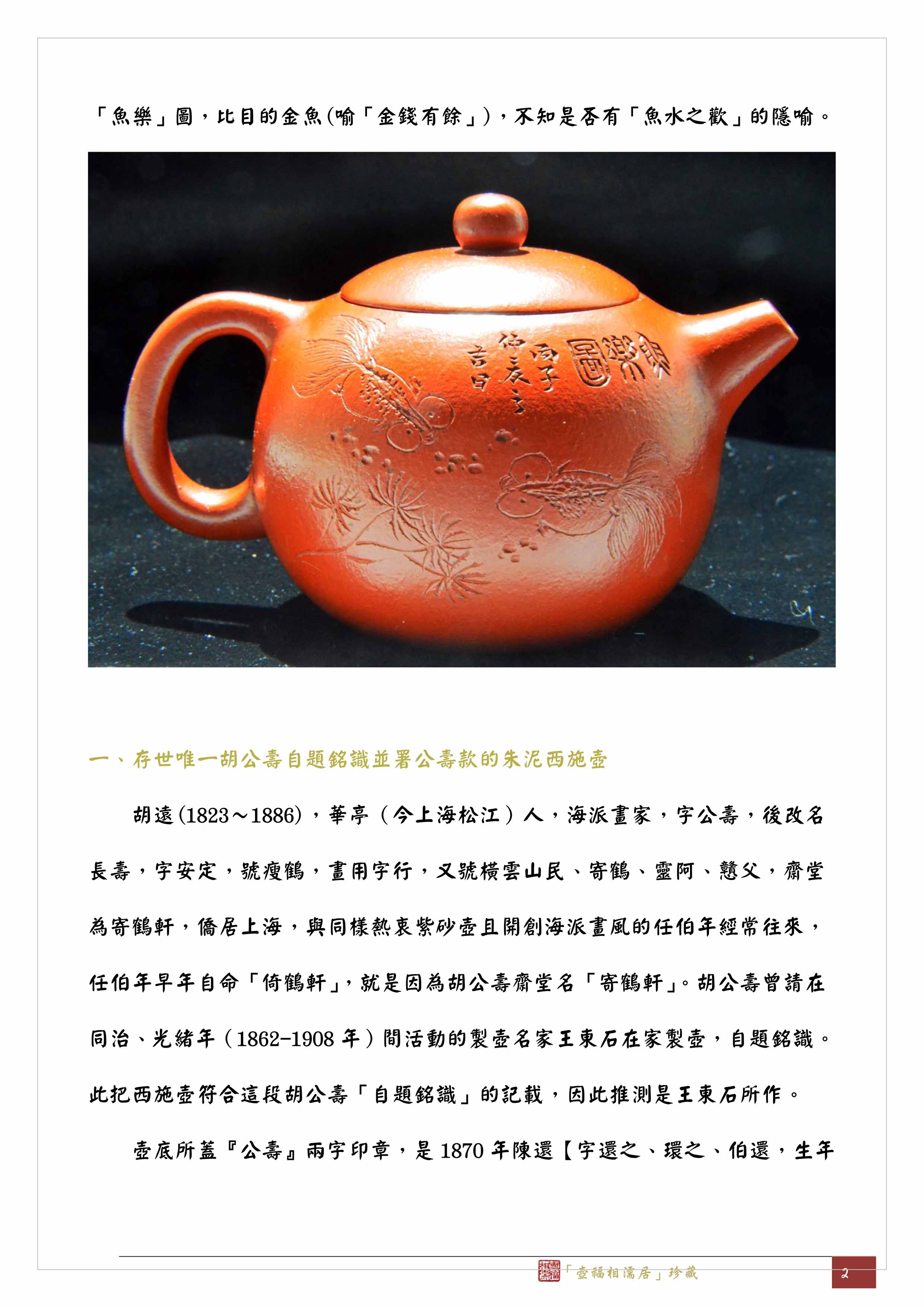 一、存世唯一胡公壽自題銘識並署公壽款的朱泥西施壺