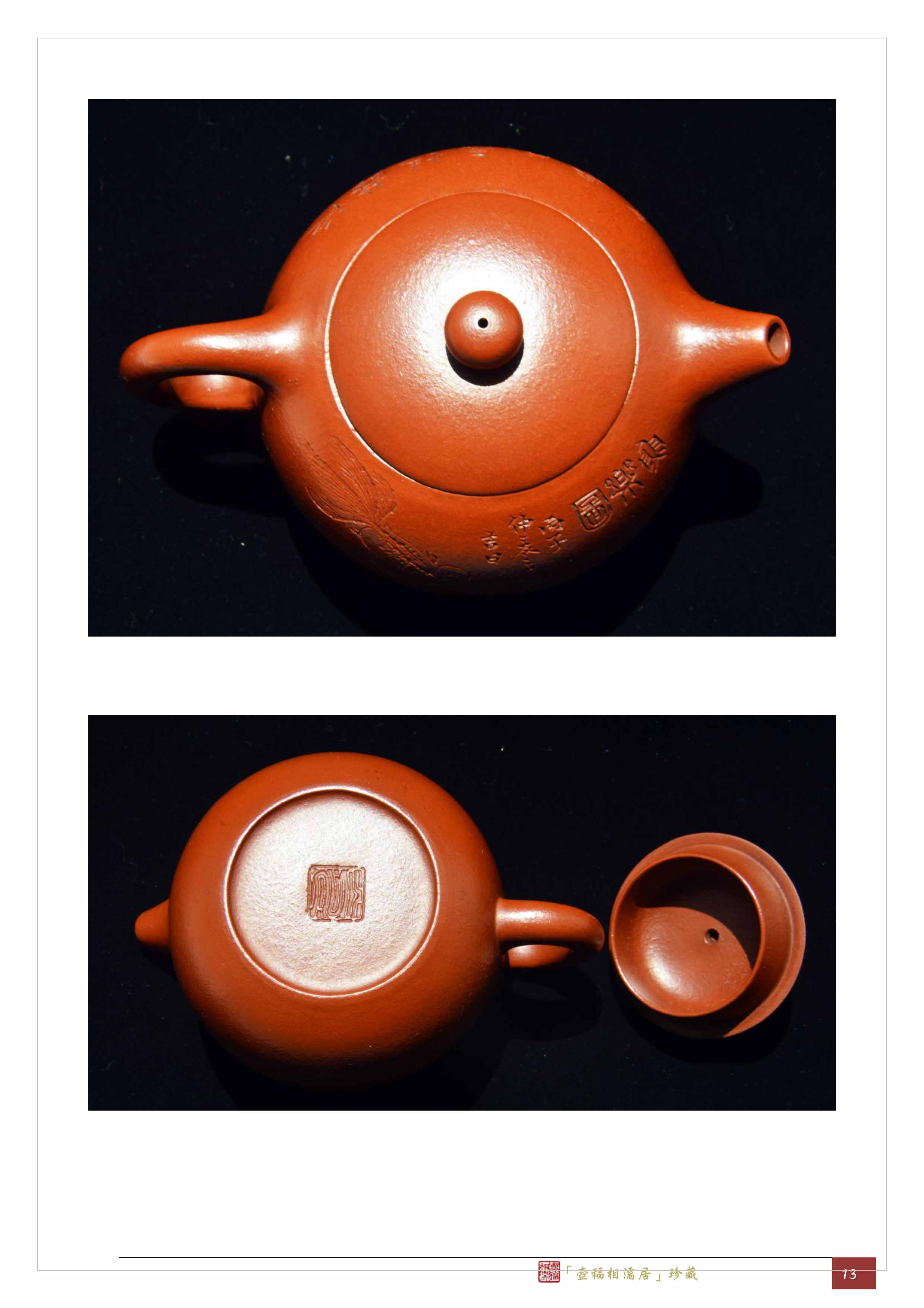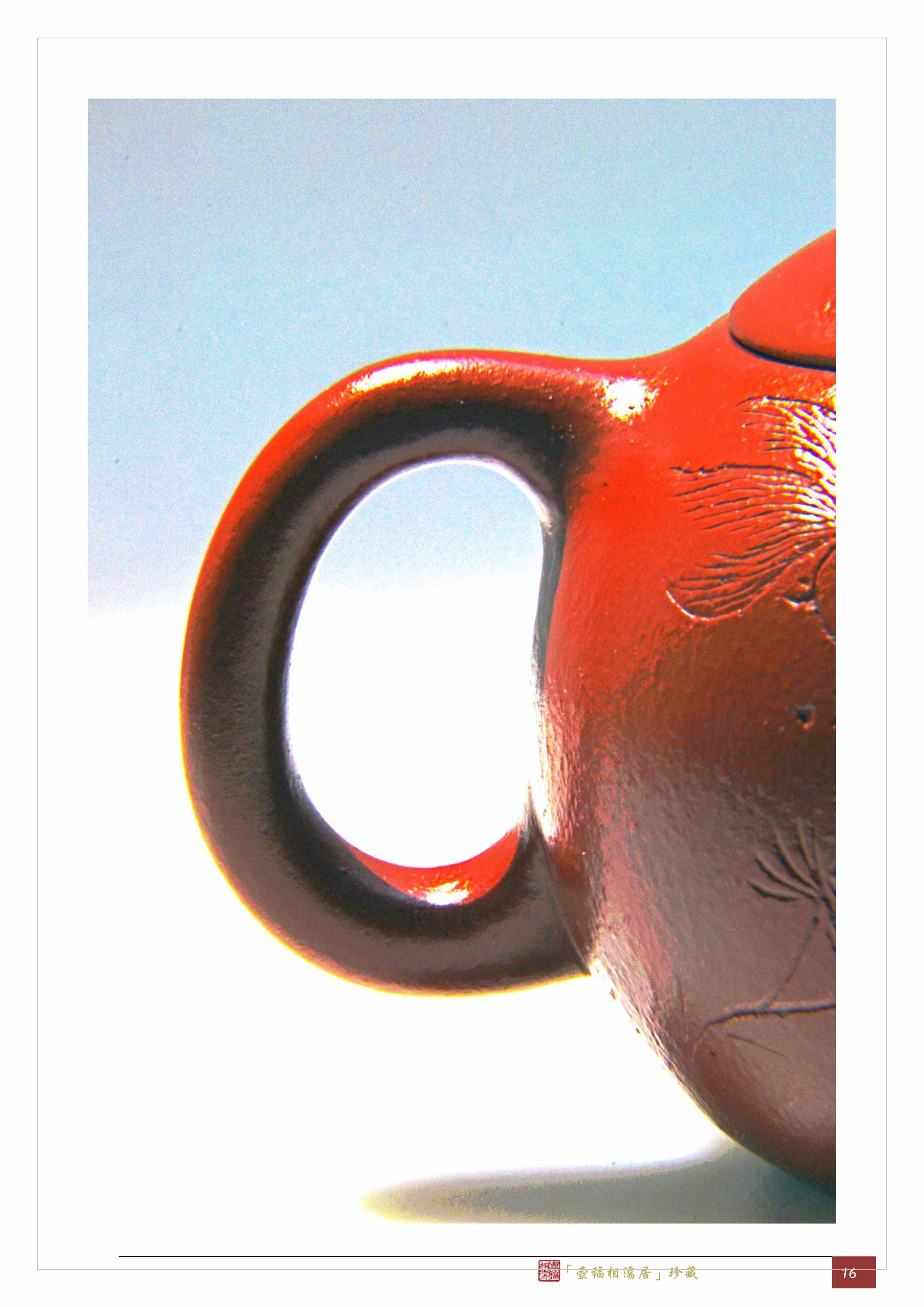 這把有明確銘文紀元的朱泥西施壺符合上述六項特點,只是壺形更為豐滿,另在倒把的部分有些差異,說明了現在的西施壺與晚清的西施壺在形體上是雷同的,但是卻不是完全一致的,因為也曾見一捺底的晚清西施壺。