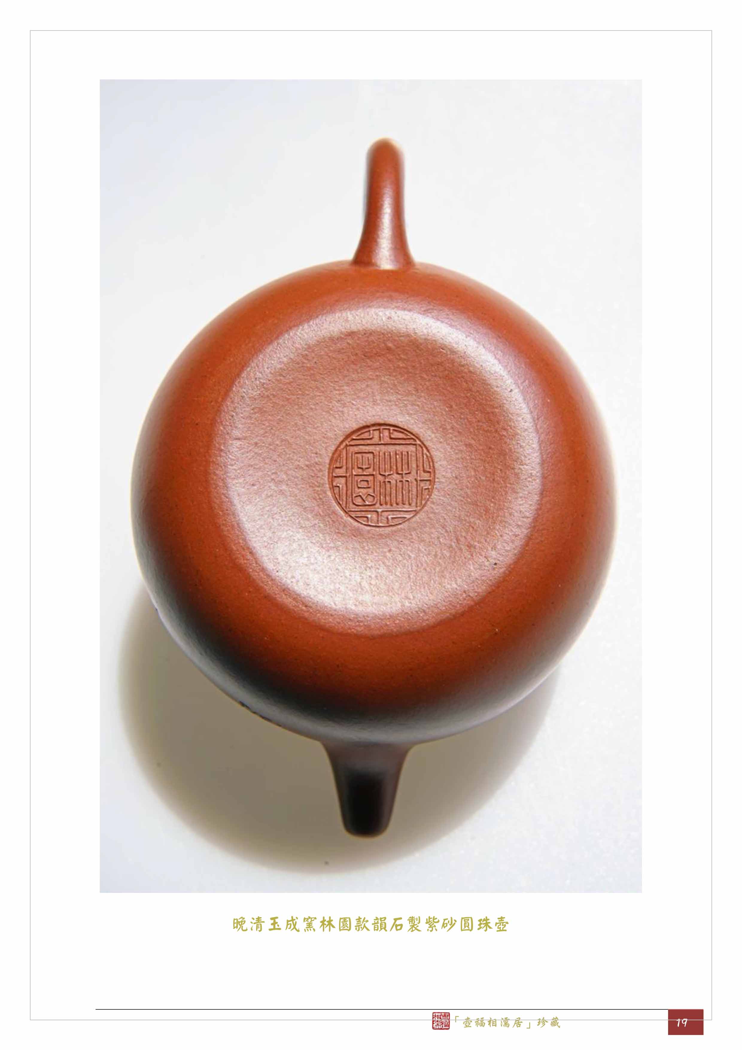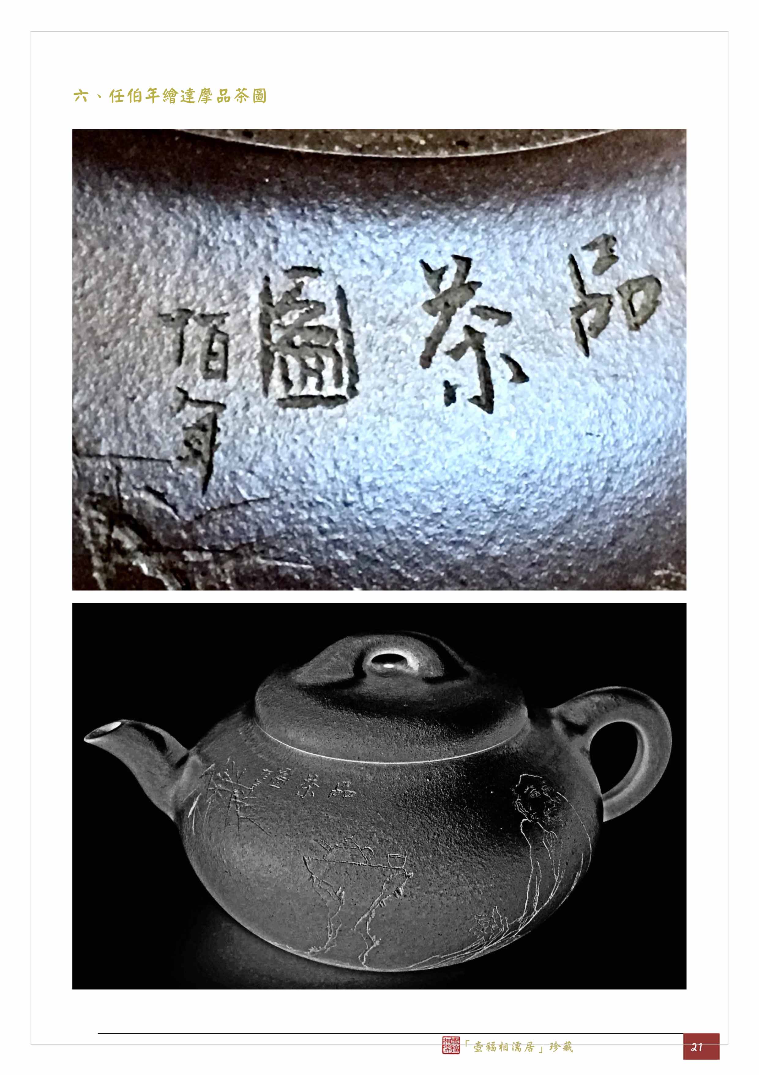 此壺屬玉成窯壺系列之一,底款「林園」,壺身銘「品茶圖 伯年」。