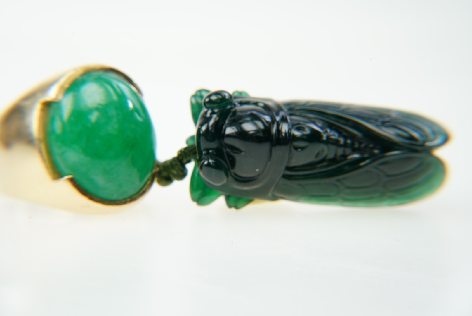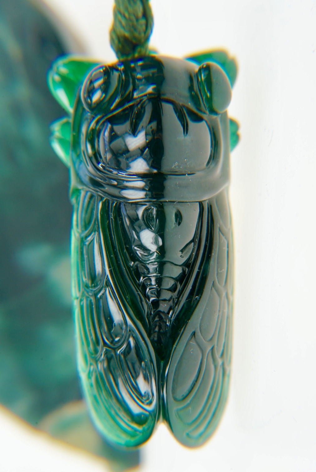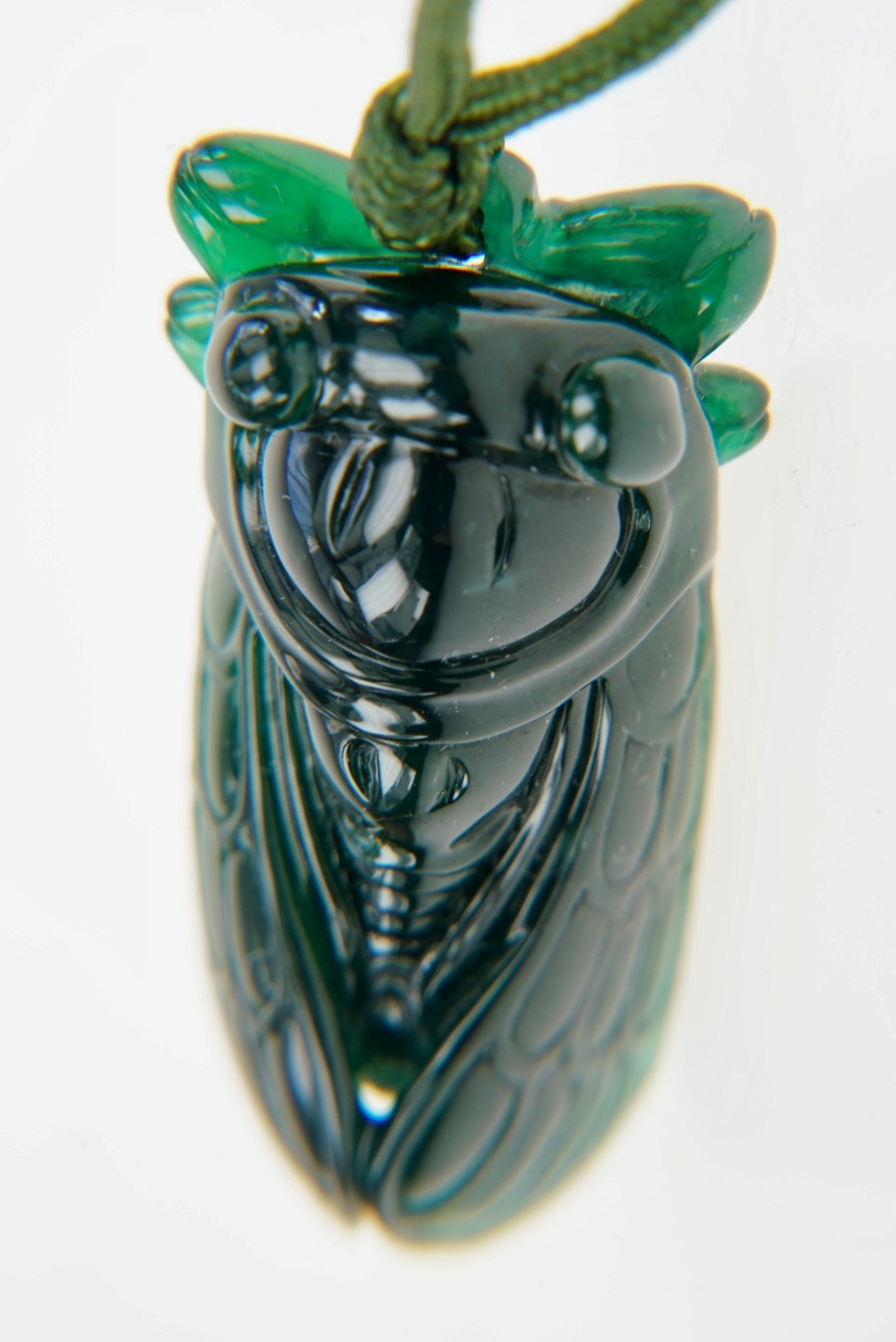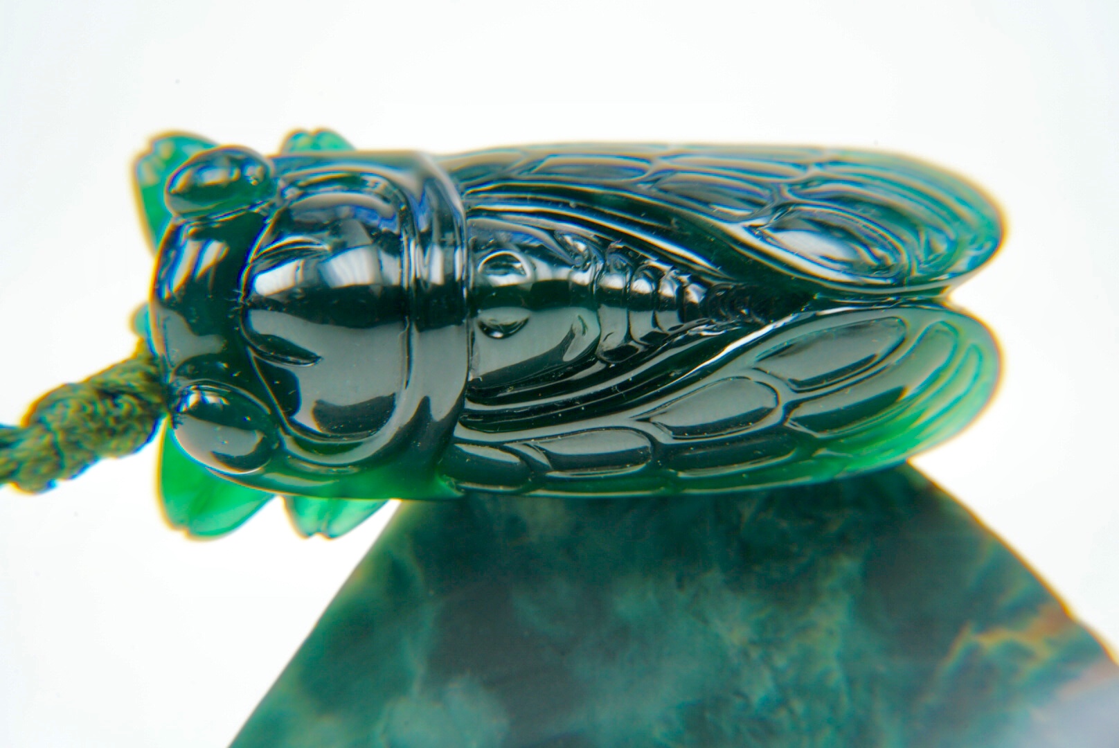 2018年9月10日下午,在一位賣家手上欣賞到一件大馬坎場口的翡翠玉蟬,因為賣家本身在廣州開玉石加工廠,所以我是從他以天價買進一顆握拳大小的原石,謹慎開石,費心構思,雕成玉蟬,一路看過來。雖然這類高檔翡翠與我無緣,但是「物經我眼如同我曾有」,看了還是很開心,尤其還是經過我手為它拍照。