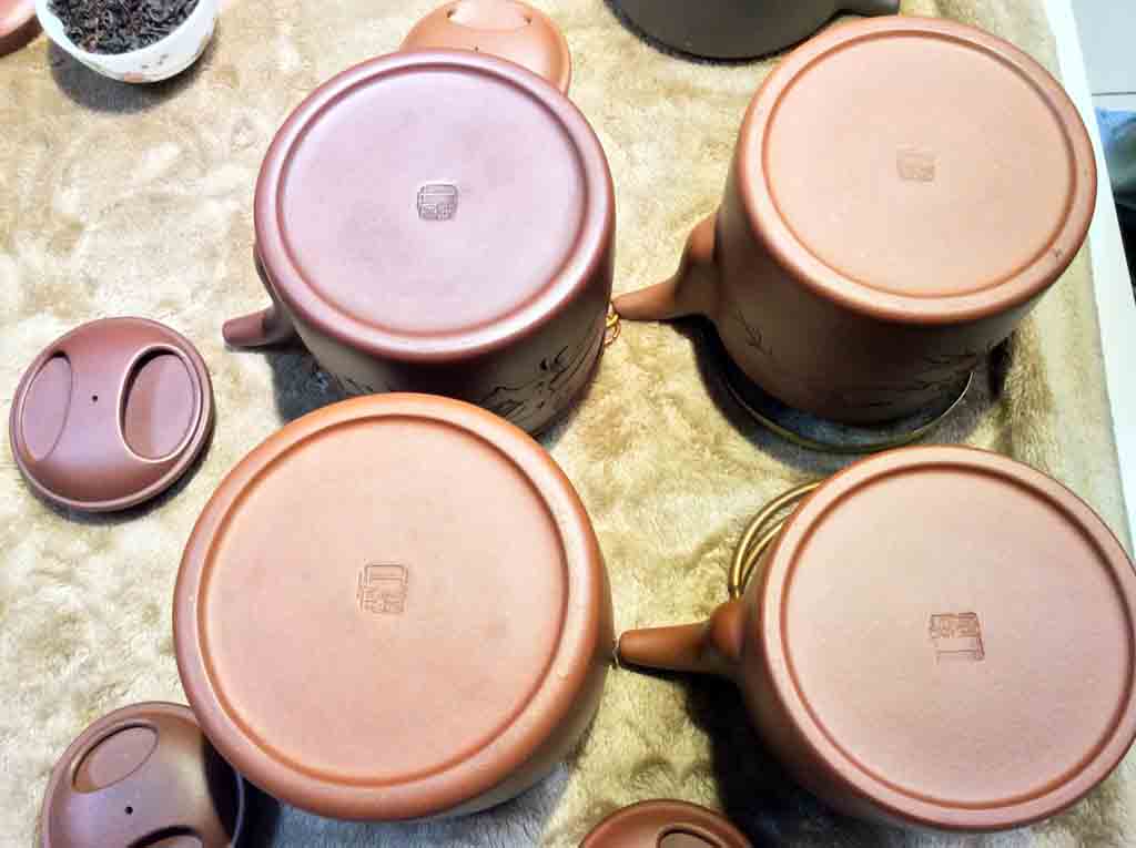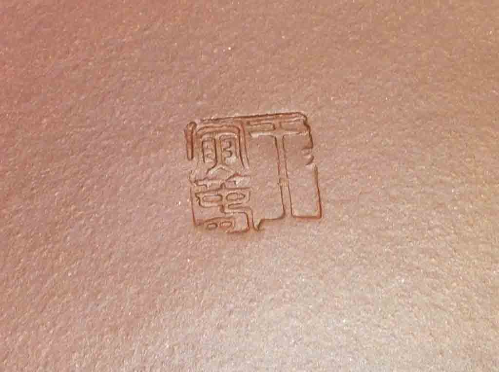 但是。按照現在的用印章法,理論上應該是印款的正上方對著壺柄,但是在比對中發現有4把是印款的正上方對著壺嘴,這就令人迷糊了?究竟「印款的正上方對著壺柄」的習慣是「鐵律」?還是每一時期都有不同的習慣?這點還有賴來日再繼續探究。