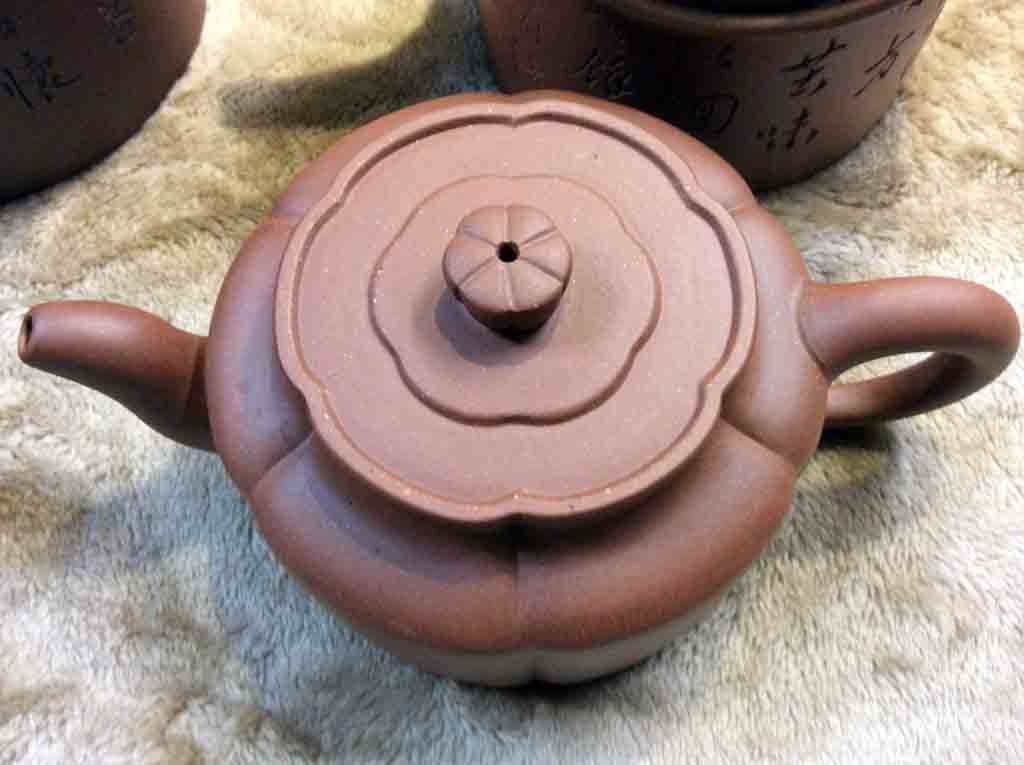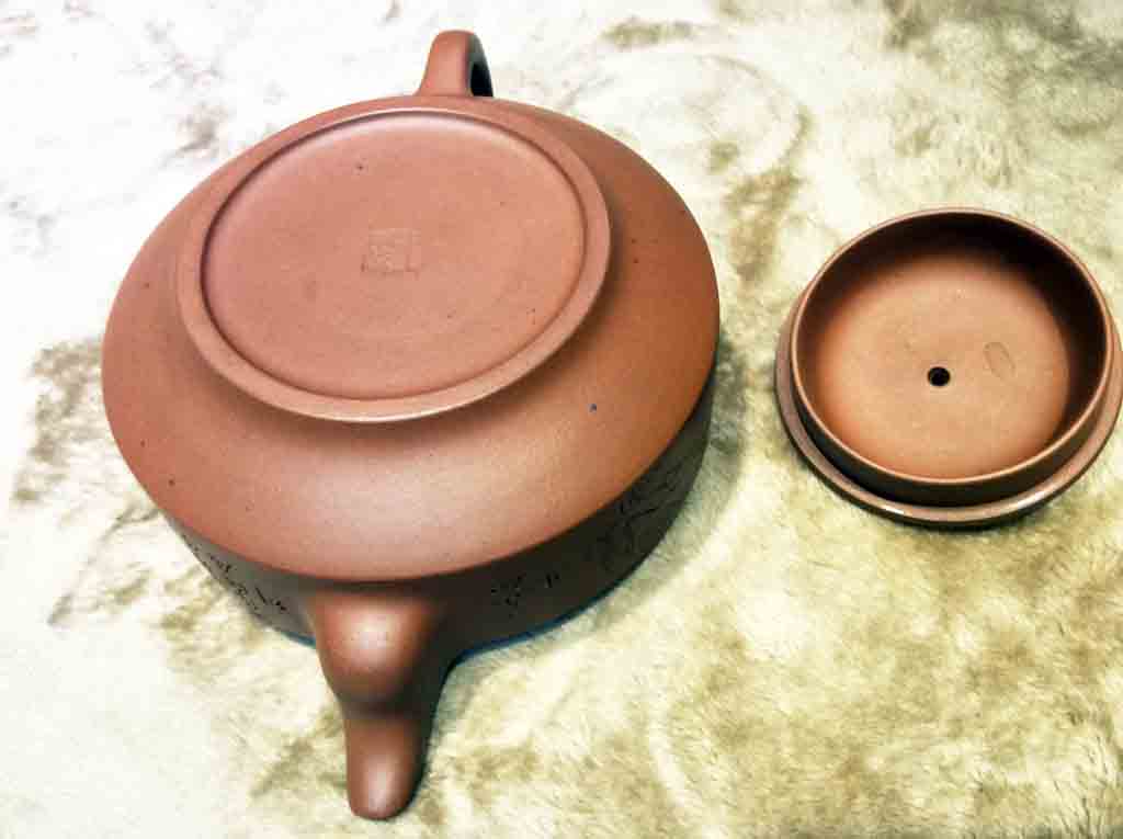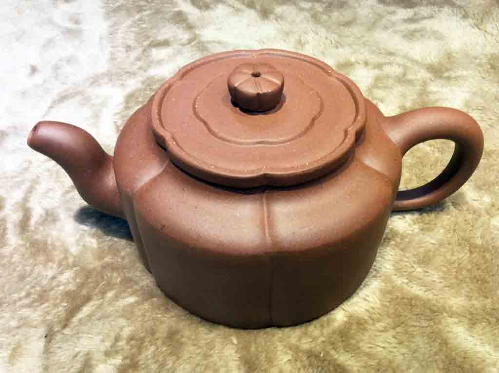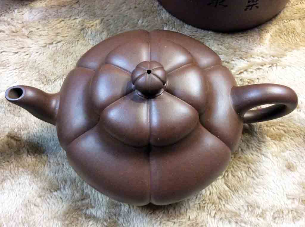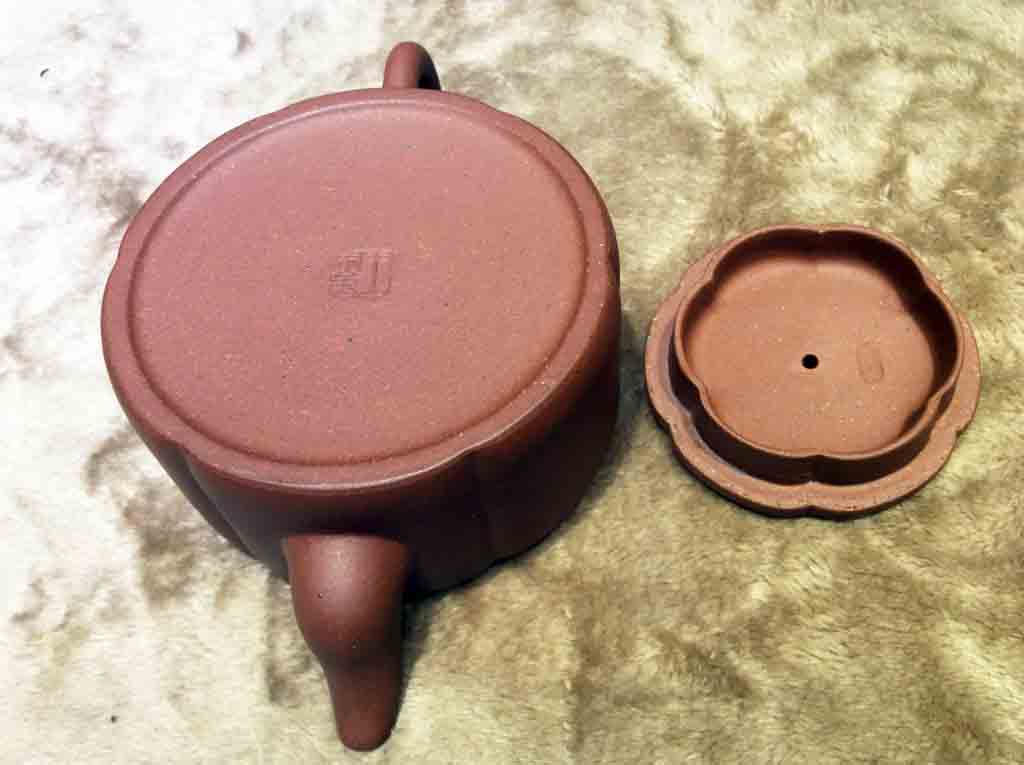 這把王寅春款的紫砂六方菱花壺是老友小余在1988年4月所購藏的。另外,他在稍早之前還曾藏購過王寅春的漢君壺。
