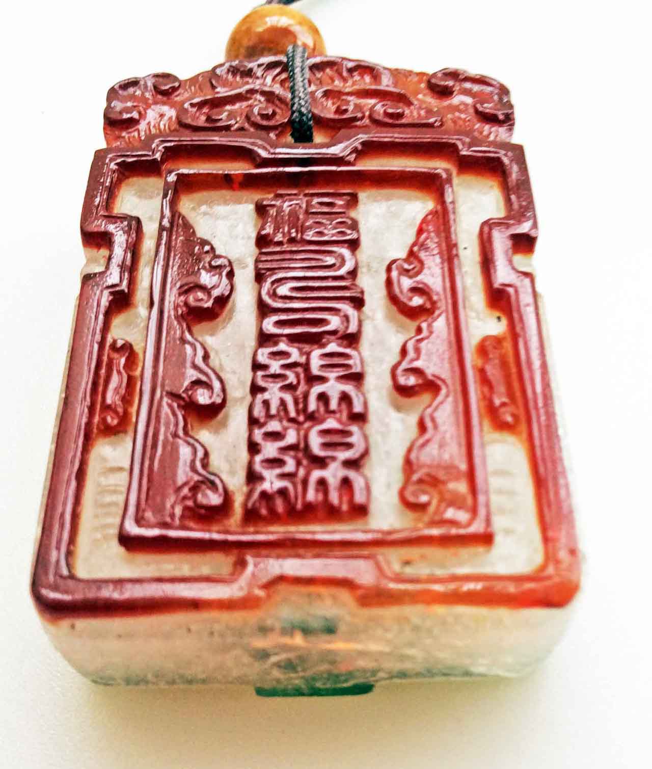套料琉璃又稱乾隆玻璃,在乾隆朝發展到顛峰,以套料鼻煙壺最為著名。之後,隨著清代國勢的下滑而衰落。曾見過幾枚類似的齋戒牌,不過都沒這枚漂亮。