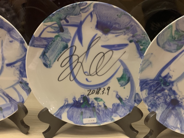 「饗宴鐵板燒」有一面三櫥櫃的名人榜,內有63個瓷盤上有明日簽名,從2010年的孫叔叔、張清芳,到2020年的袁詠琳、吳念真,瓷盤上有姿態萬千的簽名與留言,字如其人!或許由此可觀之!至少也是另一種企業資產!