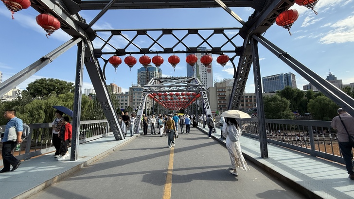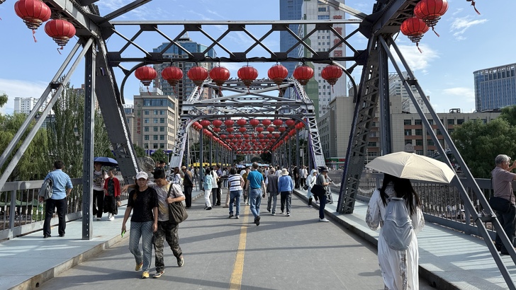 蘭州的黃河鐵橋,又名中山橋,位於甘肅省蘭州市白塔山下的濱河路中段,當年是由美國橋樑公司設計,德國泰來洋行承建,中國工匠施工的合作模式所建成。