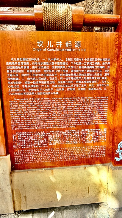 2025年9月4日上午10時許,到新疆吐魯番坎兒井民俗園參觀。「吐魯番坎兒井民俗園」位於新疆吐魯番市高昌區亞爾鄉新城西門村,距市中心僅三公里,民俗園包括坎兒井、坎兒井博物館、民俗街、民居賓館、葡萄園等,將具有悠久歷史的坎兒井和具有民族特色的庭院式民居賓館融為一體,既能讓人們參觀有400多年歷史的坎兒井及其歷史發展過程,又能瞭解維吾爾族民俗情況,是當今中國最具民族特色的集參觀、觀賞、購物、度假為一體的旅遊景點。