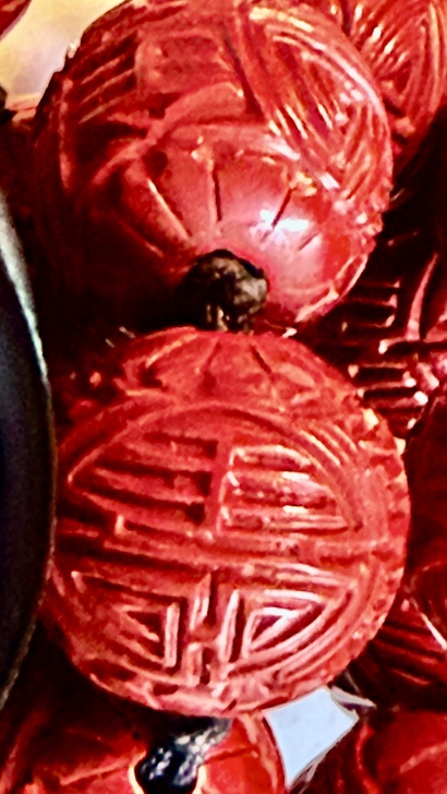 今天,拿著這串漆器手串在手上把玩,忽然想起—~何不讓ChatGPT來做個鑒定,於是當下以手機拍下照片,上傳ChatGPT,請AI對這個18顆雕壽字漆器手串評鑒年代跟藝術價值與市價!結果出來,是~近年仿做的,我這才拿起放大鏡再仔細看看看,確實這雕工太過平滑,漆皮沒有堆疊的層次,再度確認這是近代仿做的,看來以前對它的認知真是一場誤會,因之也學得一些鑒別的知識,特別記錄如下,分享之。