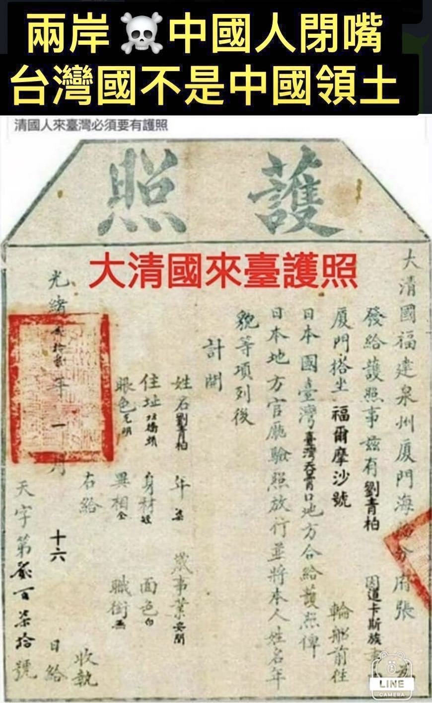 光緒二十六年,清朝人到台灣要用護照,不是因為台灣還屬於清朝,而是正因為台灣已經不屬於清朝了。