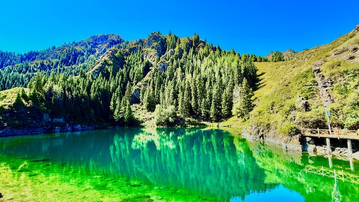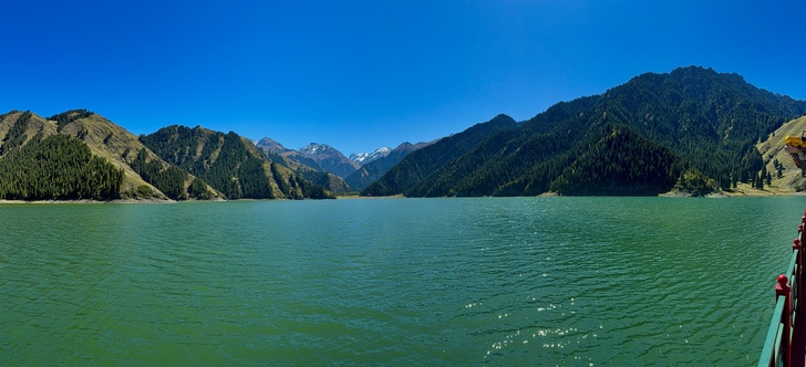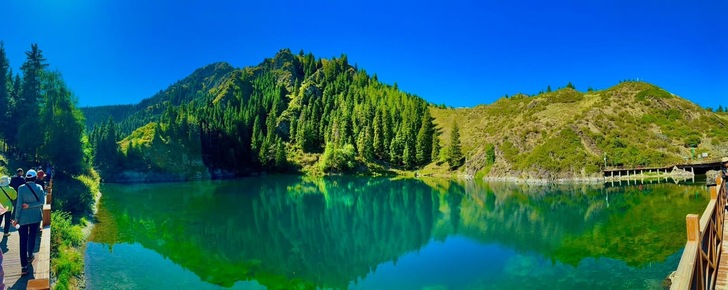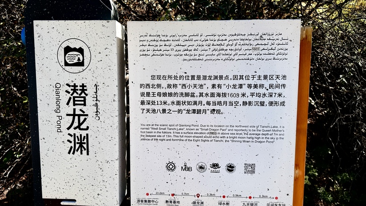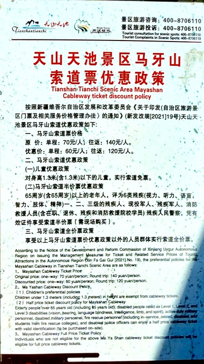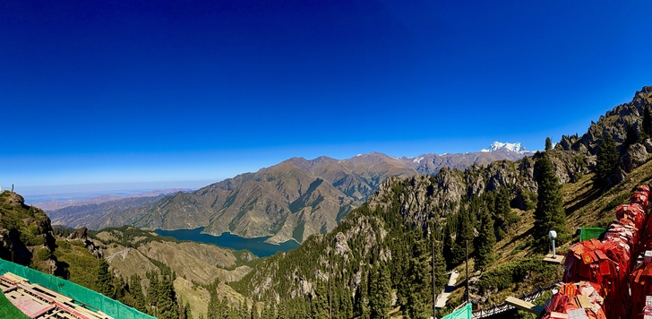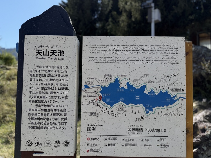 2025年9月5日,我們這群參訪北疆與絲路的旅客,在上午9時搭遊覽車出門,10時許抵達天山天池的大門,開始這趟探訪「天山天池」的行程。直到下午17時結束在天山天池的參訪,搭車離開,至19時30分回到住宿的烏魯木「齊康萊德酒店」,全部行程包括:去了天山天池的老景區門口,並在門口餐廳用餐;去了天池西北側,傳說是王母娘娘梳妝鏡的西小天池;在池邊觀覽天池,並搭船遊覽天池一周;搭纜車上海拔為3,056公尺的馬牙山的山頂,俯瞰天池,並在山頂邊的「懸空咖啡廳」喝咖啡。可以說一整天都泡在天池的景區裡,除了沒有親自登上天池邊的「西王母娘娘廟」,算得上是一趟「天山天池」的深度旅遊了。