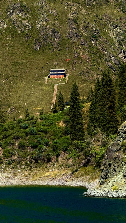 「西王母祖廟」位於新疆昌吉回族自治州阜康市天山天池東岸,始建於元朝,因供奉王母娘娘又稱「娘娘廟」。