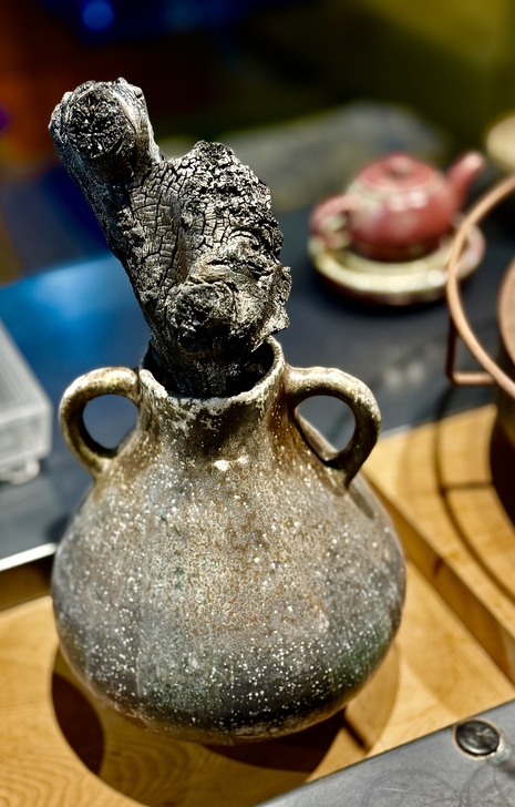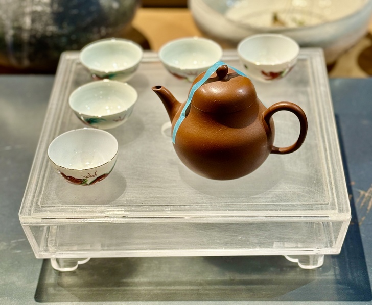 因此,在「串門子」的空間裡,即便是看似漫不經心的陳列,都彷彿帶著某種細緻的安排:一盞壺的形影、一只杯的弧線、一處灰白光影的停駐,都讓人不禁放慢腳步,凝神細看。那些被視為品茶啜飲的器物,卻在此處轉化為隱形的語言~設計的語言、藝術的語言、乃至生命的語言。