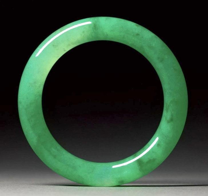 大約是十多年前,曾經近身見過這樣一只陽綠的翡翠手鐲。那天到台北羅斯福路一家著名的糕點店,買端午時節應景的綠豆糕,看到店裡年長的老闆娘也出來幫忙,當時她手上就戴著一只不遜於這只末代王孫手鐲的翡翠手鐲,當下除了讚嘆這只手鐲的色澤艷麗,並直稱好福氣,因為這樣的手鐲通常是家裡傳下來的。