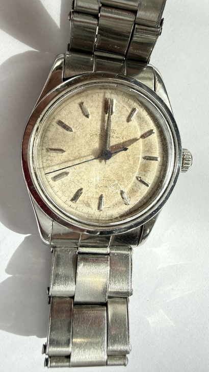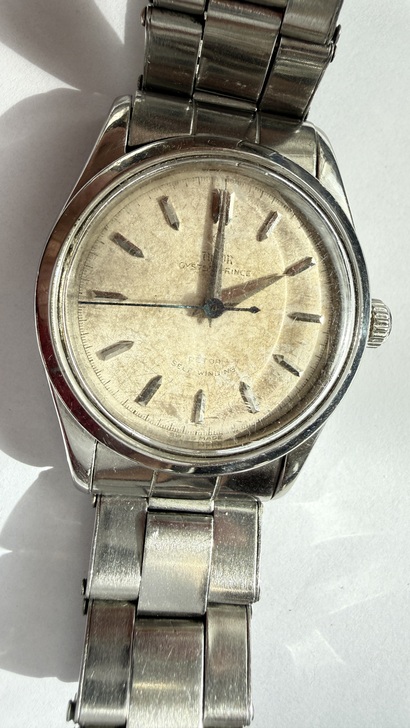* OYSTER PRINCE: 注意 12 點鐘位置的字體,其「S」與「R」的寫法在 50 年代有特定的規範。