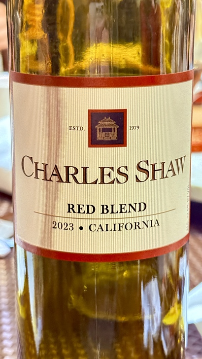 這瓶酒屬於美國平價葡萄酒界的經典代表──Charles Shaw(俗稱 Two Buck Chuck)。其便宜又有名,並非偶然,而是高度工業化與通路壟斷下的產物。
