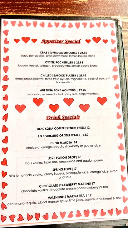 菜單屬典型加州海岸觀光餐廳配置,穩定、不冒險。