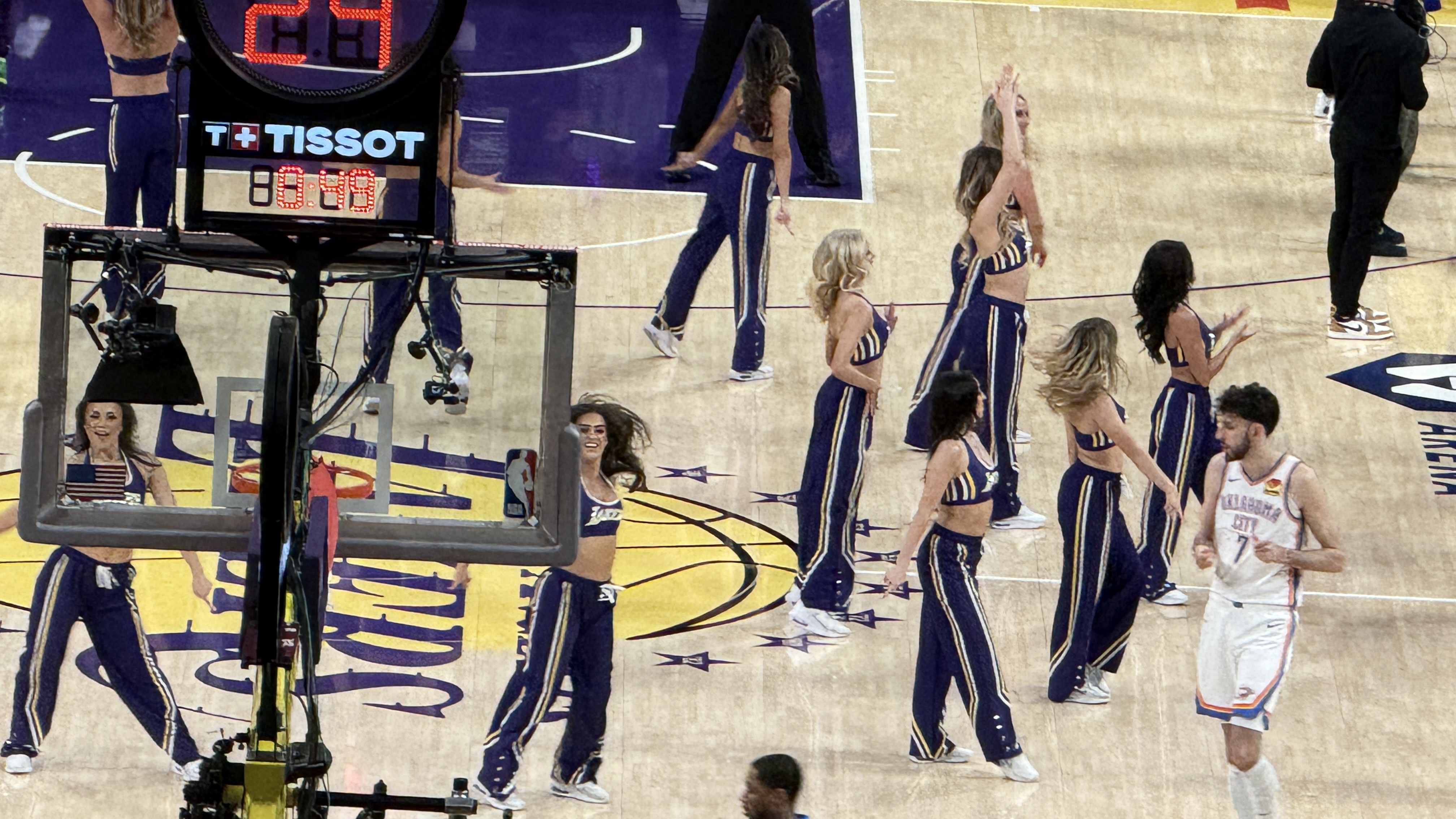 洛杉磯湖人(Lakers)對奧克拉荷馬雷霆(Thunder)比賽中的啦啦隊表演