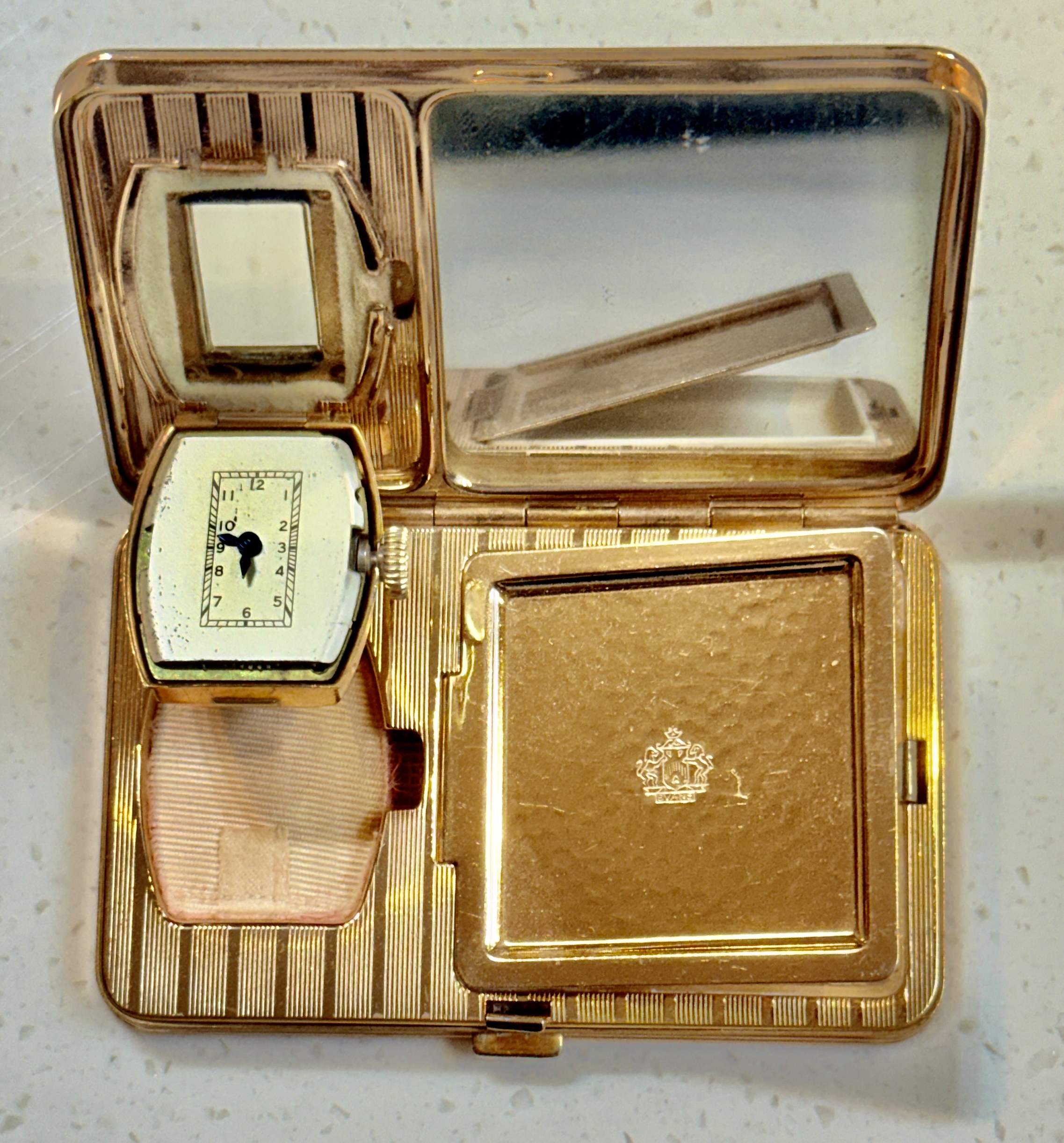 此為一件 1945–1955 年間,美國 Evans 公司製作的戰後型粉盒錶,搭配通用機械機芯,屬於量產女性隨身用品。