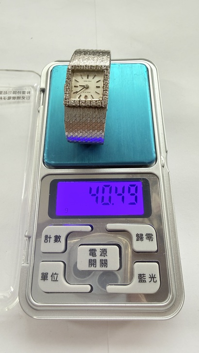 這只勞力士18K白K金鑲鑽女錶,錶帶是標示為「226」的香港製錶帶,全只錶重40.4公克。