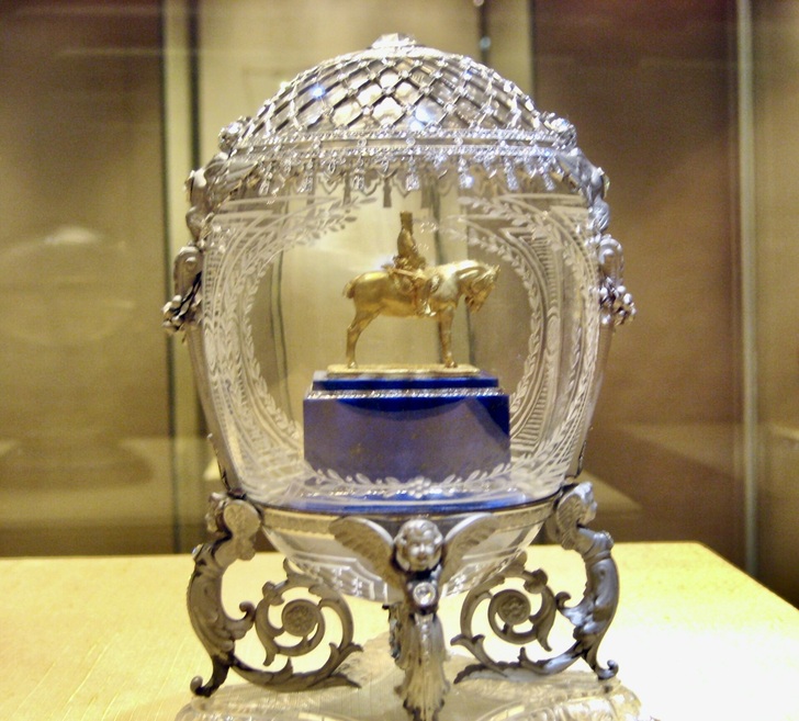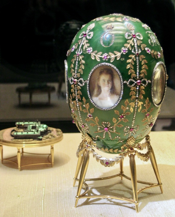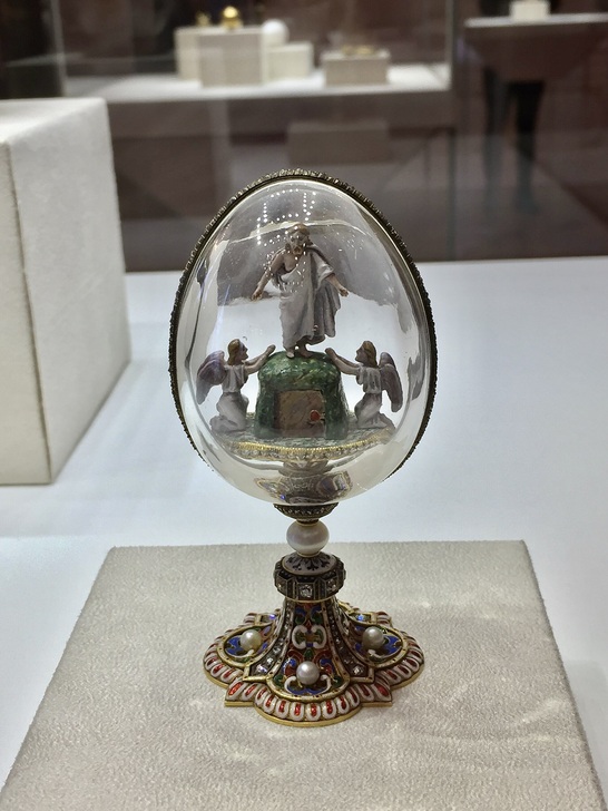 背景:俄羅斯東正教非常重視復活節,沙皇當年正是為了慶祝復活節,才委託法貝熱製作這些內藏驚喜(如迷你皇冠、馬車或小火車)的珠寶蛋作為禮物送給皇后。