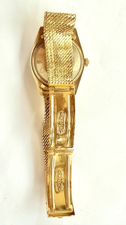 我收藏這只勞力士K金錶已經有20年了,當年是一位行家老友讓給我的。在擁有的期間,我只偶爾拿出來戴一戴,從這只錶的精緻作工、錶帶的柔軟度和標示的清晰來看,我從來沒有想過這只金錶不是原裝的。