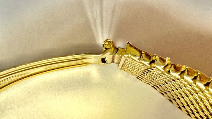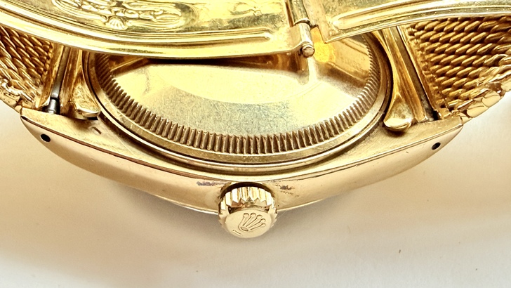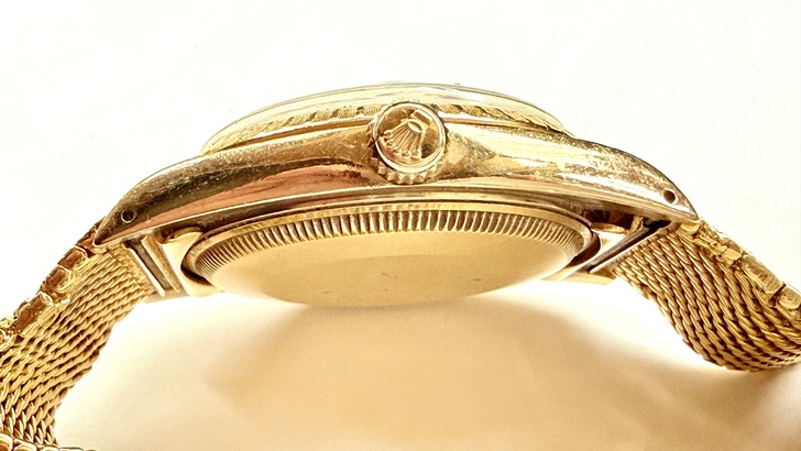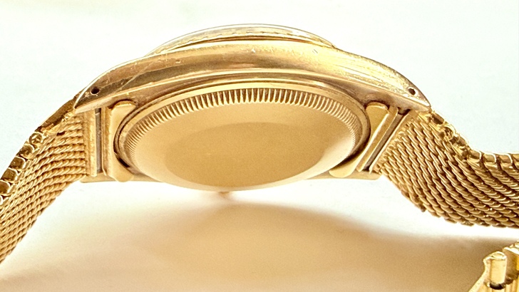 同時因為是英國錶殼,就不會有原裝勞力士錶帶的出現,那麼這條18K金的編織錶帶產自何地?按照1970s–1980s香港具備的:「無黃金材料進出口限制、成熟金工師傅體系(來自廣東)、客製化能力遠高於瑞士制式帶」的條件,這種「原錶頭+客製重金帶」的高端玩法只能出自當時還在英國治理之下的香港,當時的香港就是一個「黃金工藝自由市場」。所以這只金錶就成了「瑞士機芯+英國殼+香港帶」的組合,是1970年代末全球鐘錶產業結構與稅制共同作用的結果。
