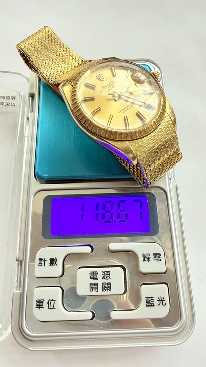 1、根據當時勞力士金錶的整體定價脈絡:類似34mm 18K 黃金 Oyster Perpetual Date 或 Datejust 在 1980 年前後的美國零售價,大約落在 USD 3,000~5,000 之間(視錶盤、錶帶配置與經銷商而定),而當時不鏽鋼的Oyster Perpetual Date約 USD 500~800,金錶與不鏽鋼錶的價格差價很大。這只帶有罕見編織 18K 金 mesh 錶帶與特殊紋理錶圈的版本,屬於更奢華的客製化或限量風格配置,其實際店面售價很可能接近或超過 USD 5,000~6,000(約當時台幣18萬~22萬左右,依匯率而定)。