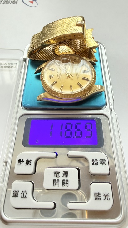 2、1980年左右,正值全球金價大漲與通貨膨脹時期,勞力士的全金錶款價格較1970年代初期有顯著增長。參考1980年全金的 Day-Date (Ref. 18038) 售價約在 $8,000-$9,000 美元,而 1514 作為 34mm 的 Date 系列,且帶有特殊的編織金帶(手工成分高),其價格僅次於旗艦的 Day-Date,估計售價約6,000~$7,500 美元,依當時匯率換算,約為新台幣22萬~28萬元之間或港幣3萬~4萬元,屬於當時極高端的奢侈品。