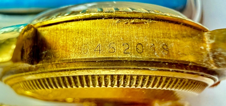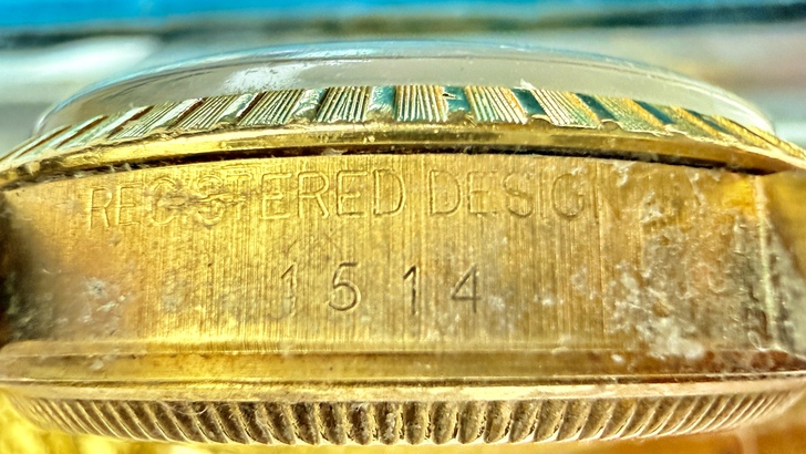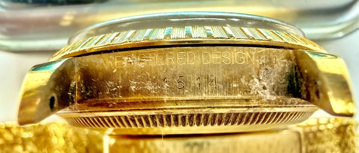 因為錶頭金殼在12點鐘方向應該標示「型號編碼(Reference number)」的位置刻印著:REGISTERED DESIGN 1514,AI說這是「設計註冊號」,「非型號」,代表這是英國「合法註冊設計的金殼」。而錶頭金殼在6點鐘方向應該標示的「生產序號(Serial Number)」:6452018,AI也說這是「正規生產序號」,所以實際生產年份需依hall mark字母來判讀,並推測為1970年代末期的1979-1980。之後說明此錶殼為1970年代末倫敦(與London hall mark完全一致)檢定之18K金殼,製殼商極可能為David Shackman&Sons體系,錶耳上的印記與橢圓maker’smark型式吻合,年代也精準對應,這與已知倫敦Rolex殼供應鏈一致。再經由錶殼、錶芯交叉驗證,三個時間點完全對齊,所以整只錶殼是英國訂做的。