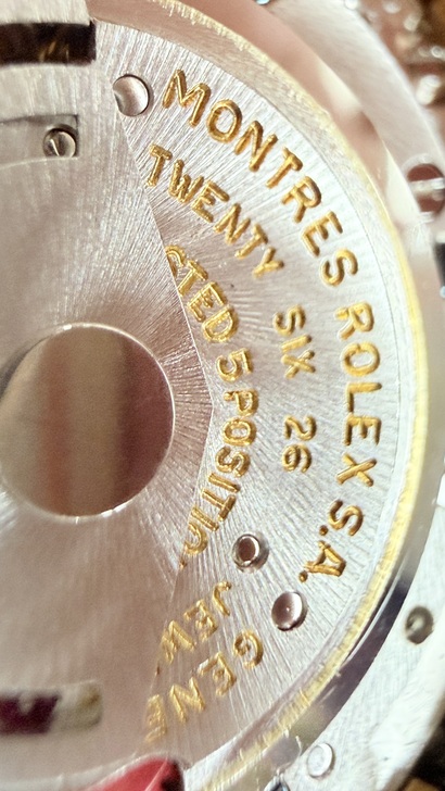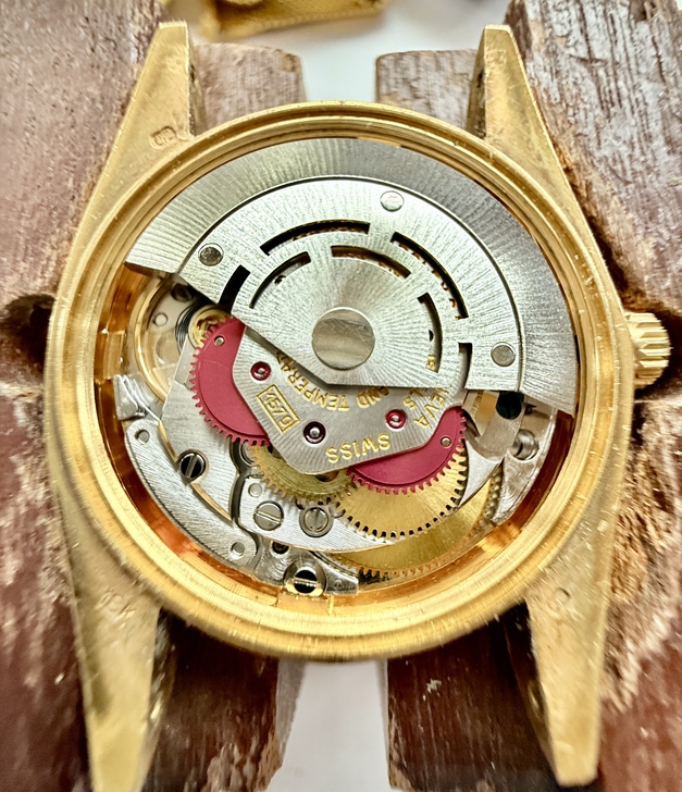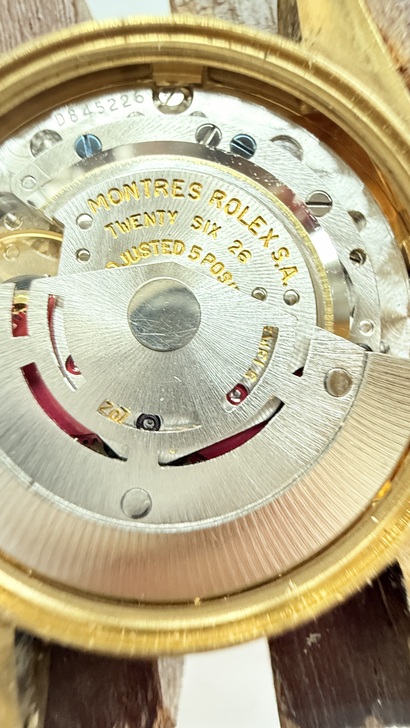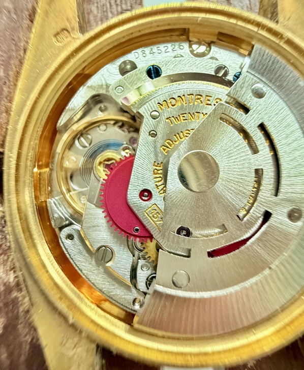 當我把這只K金錶跟AI討論時,AI依據我傳給他的圖片告訴我:這只錶的機芯是勞力士瑞士原廠製作的,機芯標示1570,但Datejust實際為1575(Rolex慣例標示)。機芯編號D845226,依序列區間推測為1970年代後期,約1977~1978年。