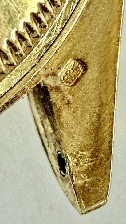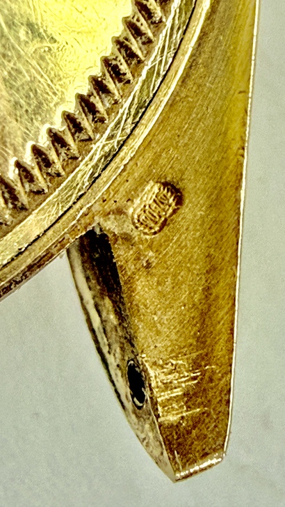 AI為了證實他的說法,還舉了很多實例:錶耳另一個印記(橢圓小印),這通常是Sponsor/Maker’sMark(製殼商),這顆已有磨耗,無法辨識字母,但仍有顯示「合法註冊製殼商」的價值。所以這顆錶頭k金殼可以明確定義為: