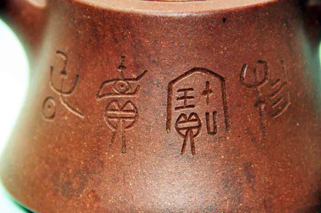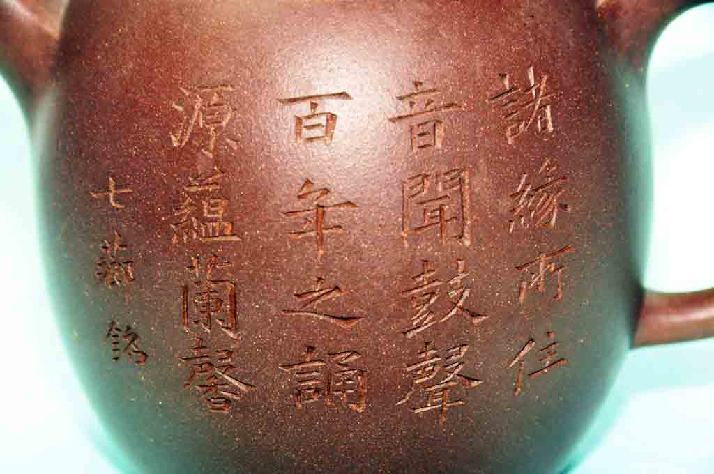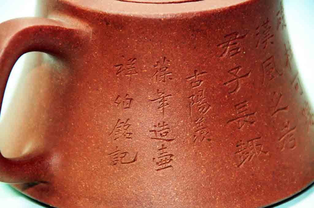 當然,在和父親的私下交流中,我們覺得曼生壺應該是紫砂老壺中最好鑒別的壺。因曼生壺上有曼生及其幕僚的書法、陶刻。其次,楊彭年是其主要合作者,其工藝、技法必然留下個人的特點痕跡。再加上這次發現了“阿曼陀室”的印譜。只要綜合幾方面研究專家的意見完全可以制定一個簡單的鑒定標準。確定幾把“標準樣”壺以後就可做為鑒定的依據。當然,這次留下的遺憾也為以後的研究提供了機會和機遇,同時,提醒我們在今後的學術交流中,紫砂業者自身素養的提高也非常重要。