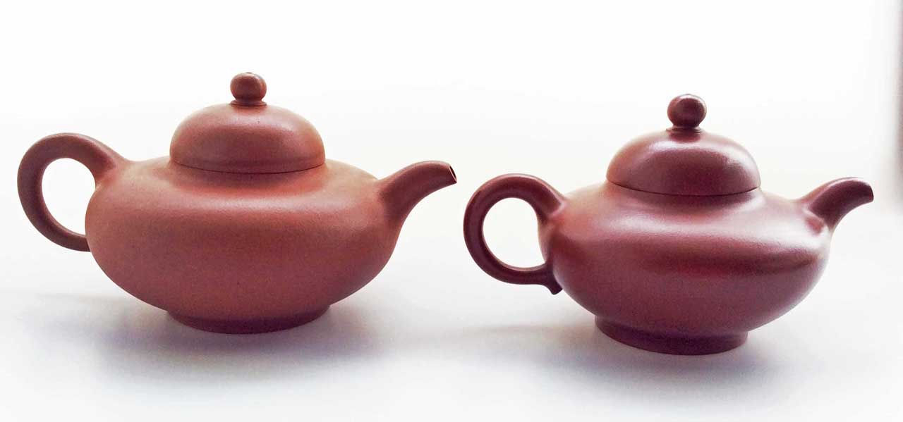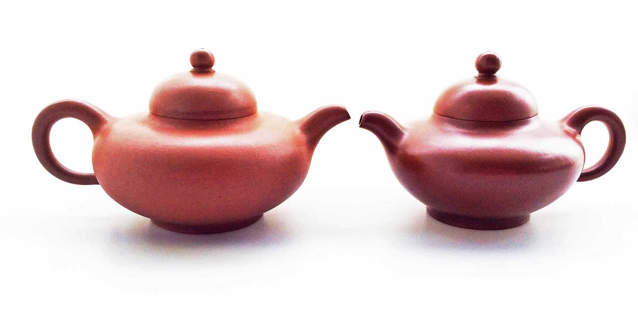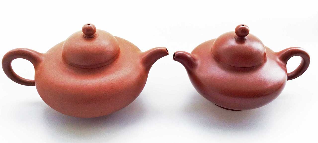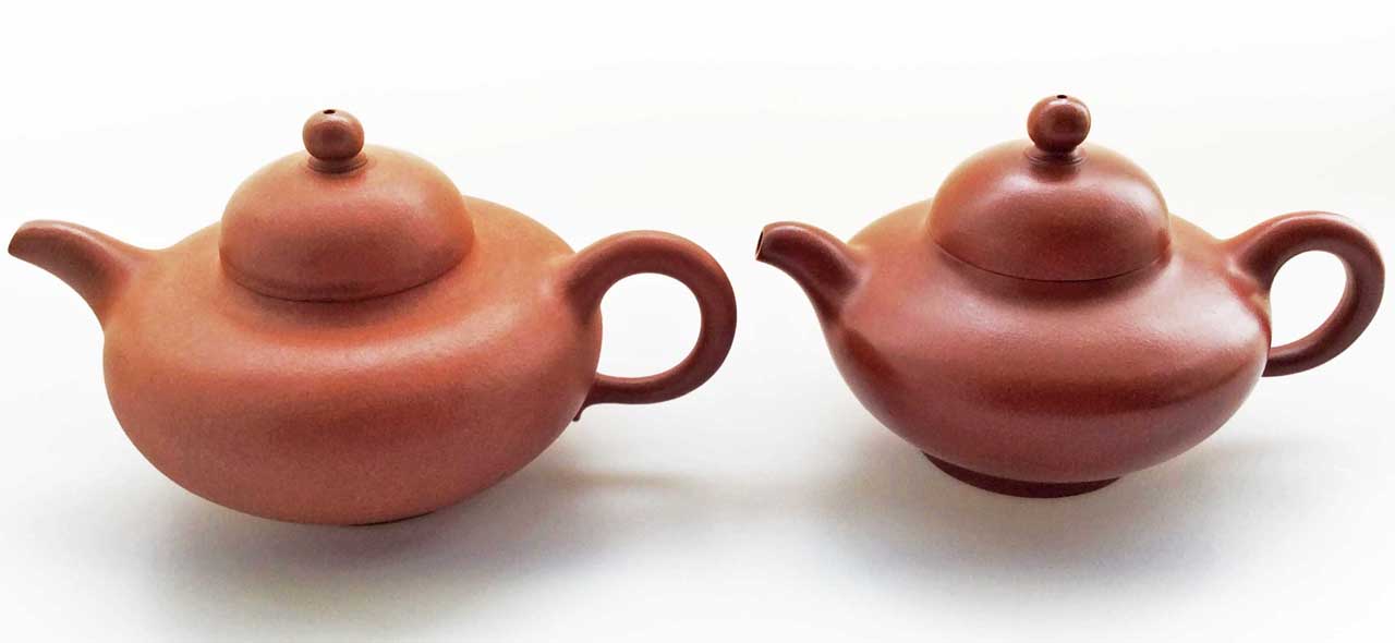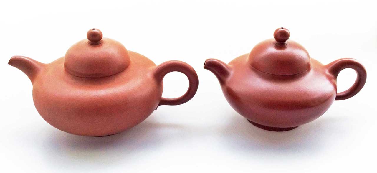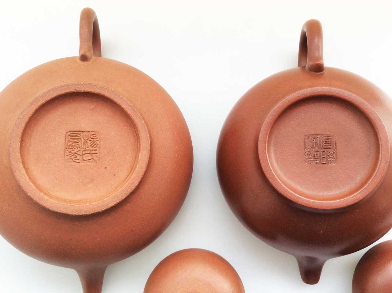 顧景舟的「華穎壺」與楊鳳年的「乳釘壺」相比較,兩者均展現出女性的圓潤,其中,「乳釘壺」較碩大,壺體較橢圓,有圓滿豐腴之感;「華穎壺」較高挑,壺體下半部呈削足狀,有神燈壺的韻味。