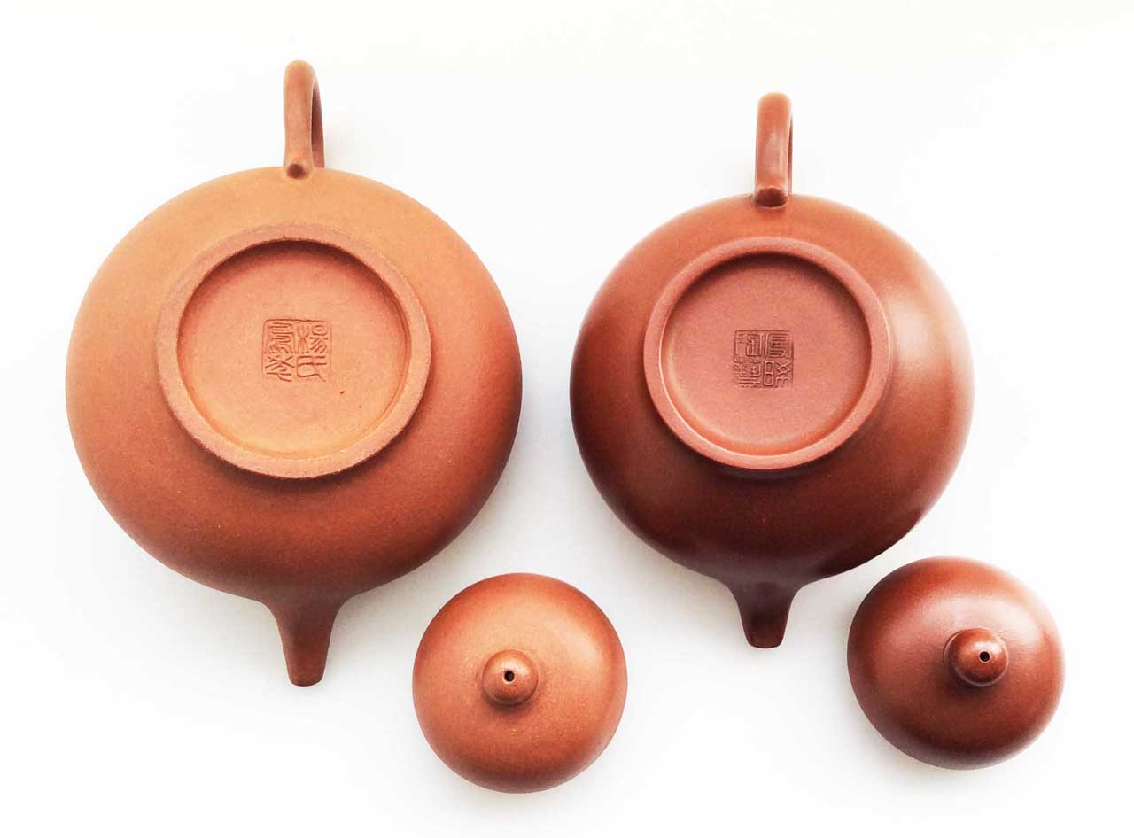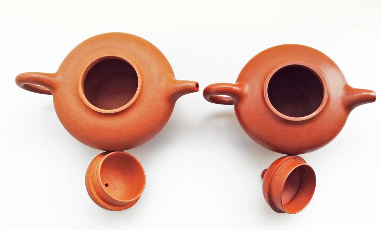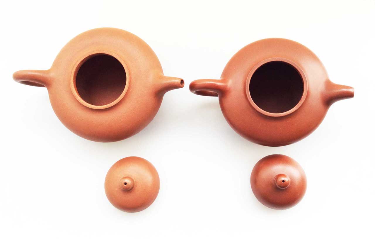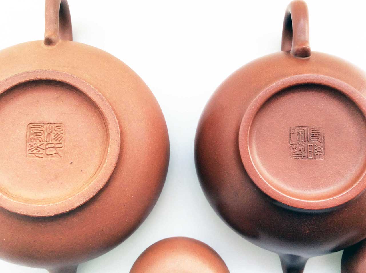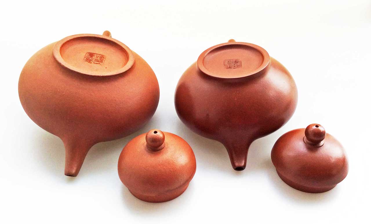 顧景舟的「華穎壺」與楊鳳年的「乳釘壺」相比較,兩者均展現出女性的圓潤,其中,「乳釘壺」較碩大,壺體較橢圓,有圓滿豐腴之感;「華穎壺」較高挑,壺體下半部呈削足狀,有神燈壺的韻味。