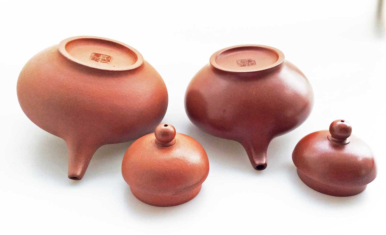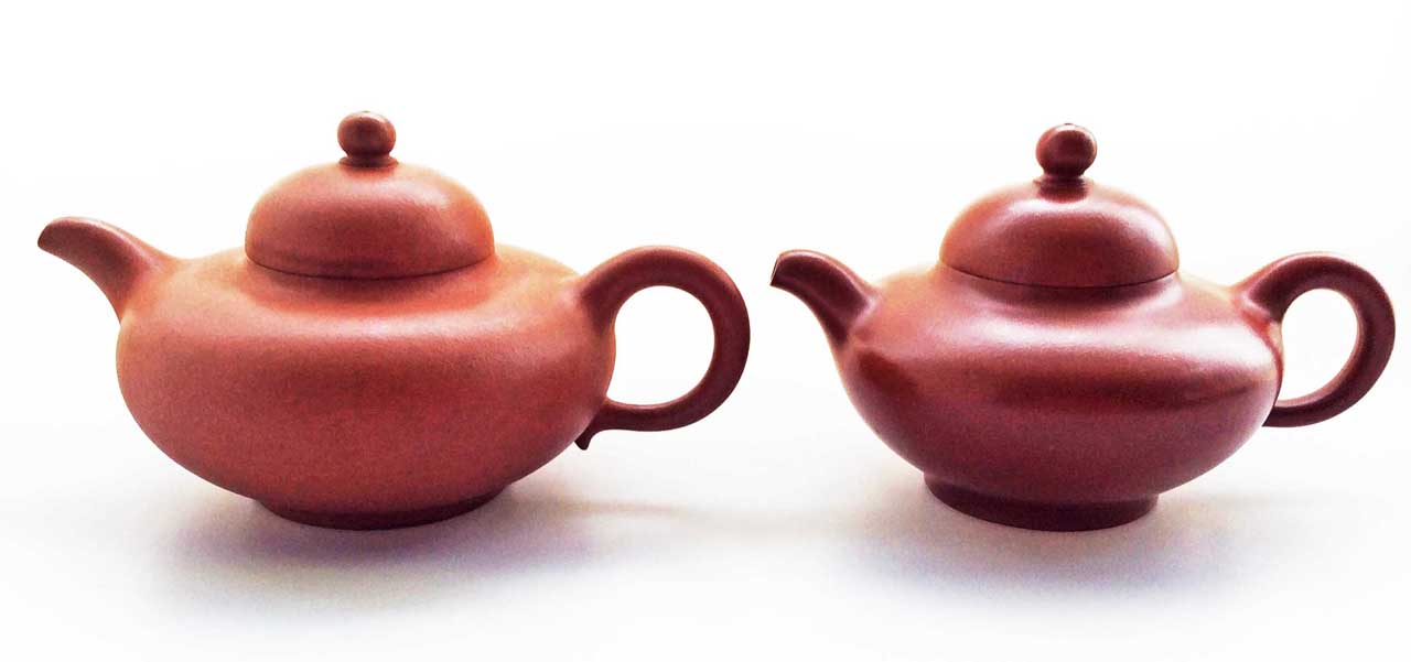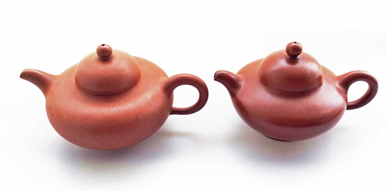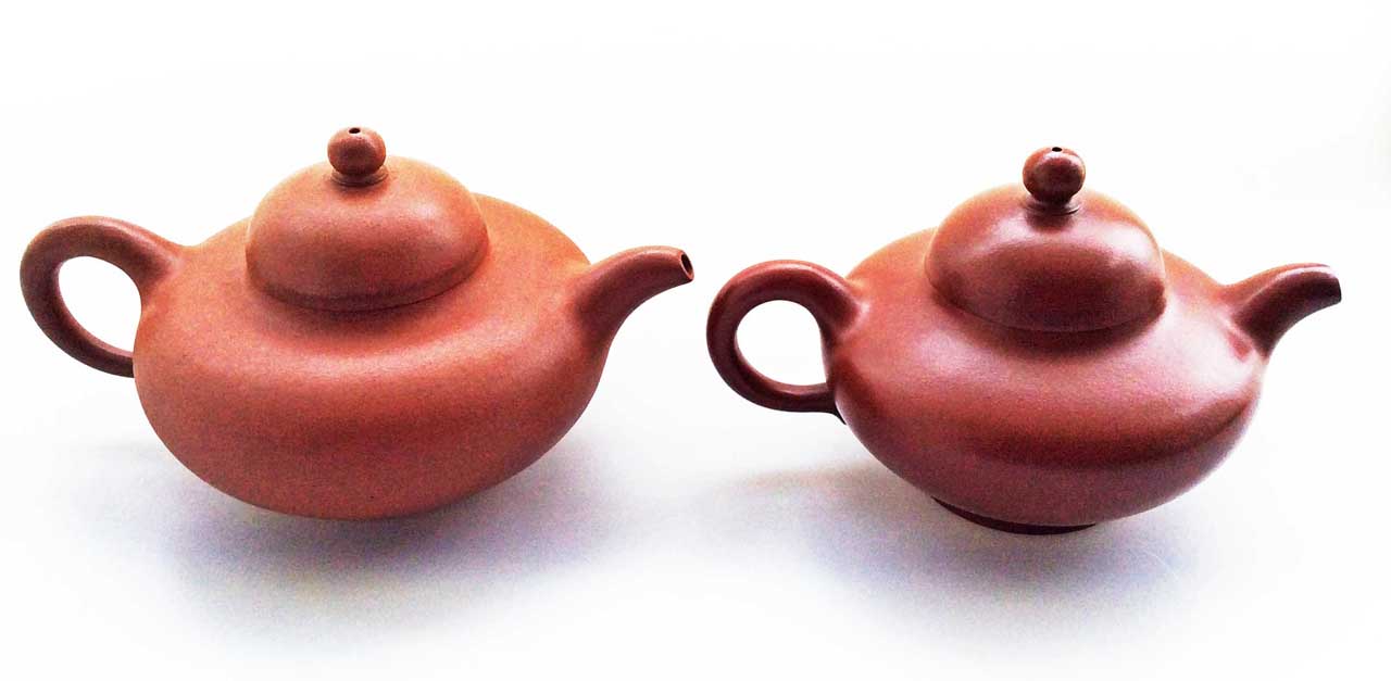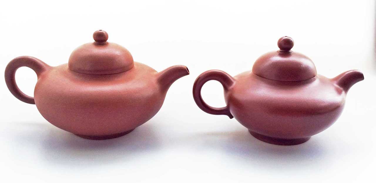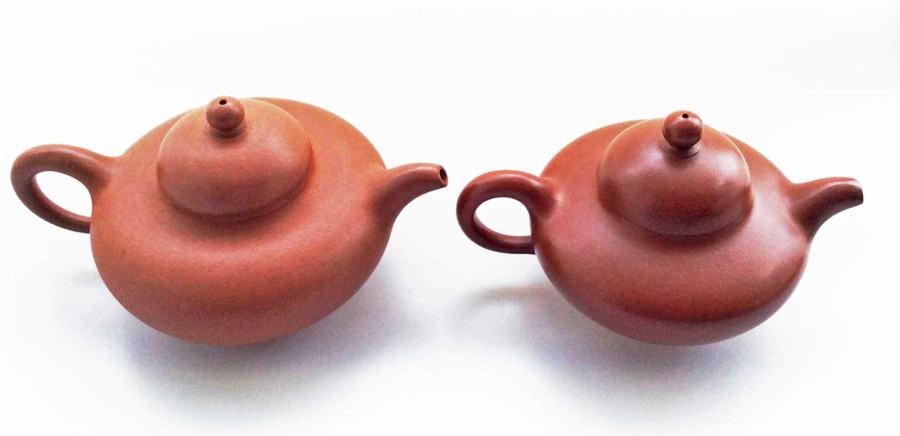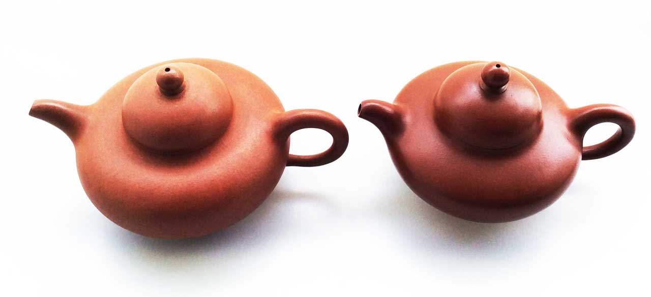 2015年1月17日中午,因日前在「清樂玉器」古董店欣賞了一把陳老闆從日本買回的顧景舟款華穎壺,感覺上與1830年代前後陳曼生所繪製的乳釘壺類似,當時猜測華穎壺可能出身於乳釘壺,後來查證華穎壺的源起,發現「華穎壺」確實出自「乳釘壺」,因此特將「華穎壺」與「乳釘壺」這系出同源的兩把壺齊聚一堂,比對一番,並拍照為這相隔140年歷史的交輝一刻,作見證。
