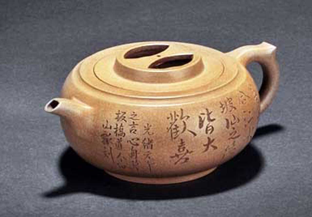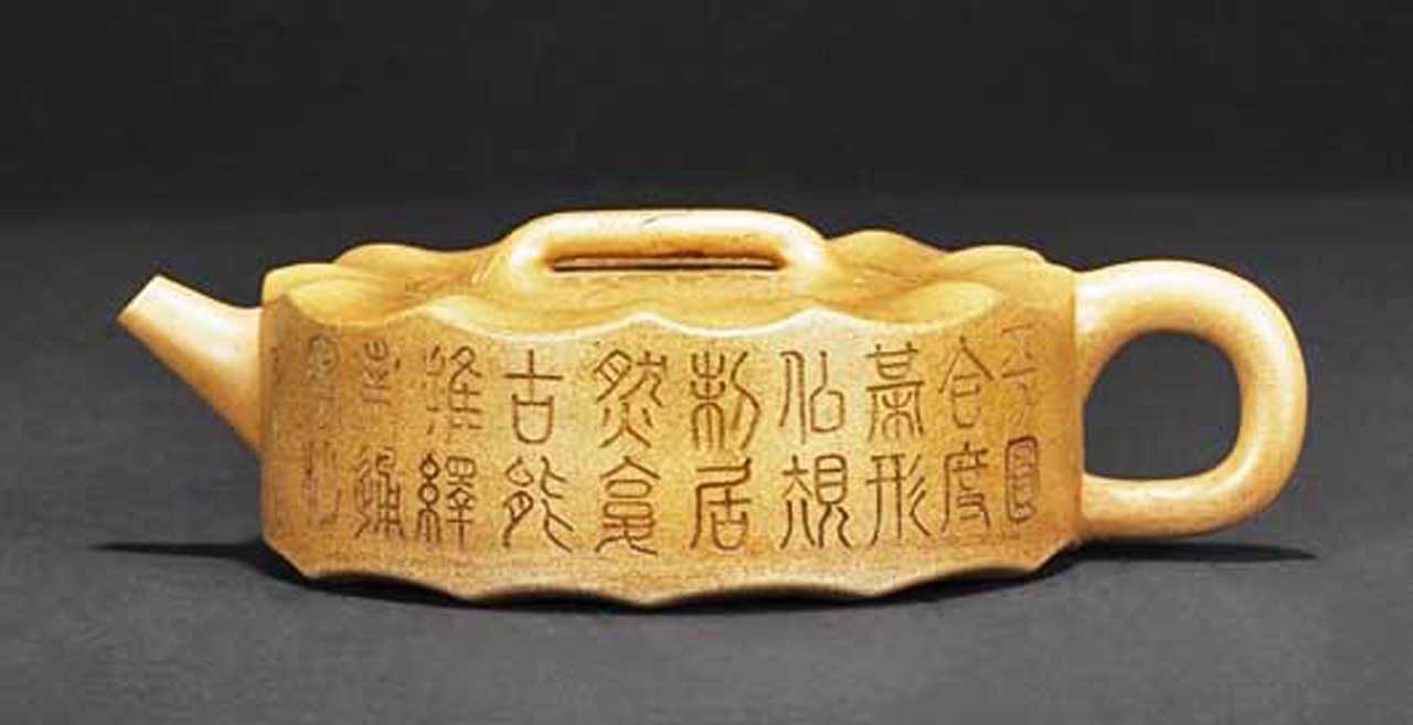 清代因訓詁、文字、金石之學盛行,所以晚清一些文人紫砂壺上都會銘刻一些金文大篆,以順應時代流行,只是歷來識者稀少,如今也成絕響。