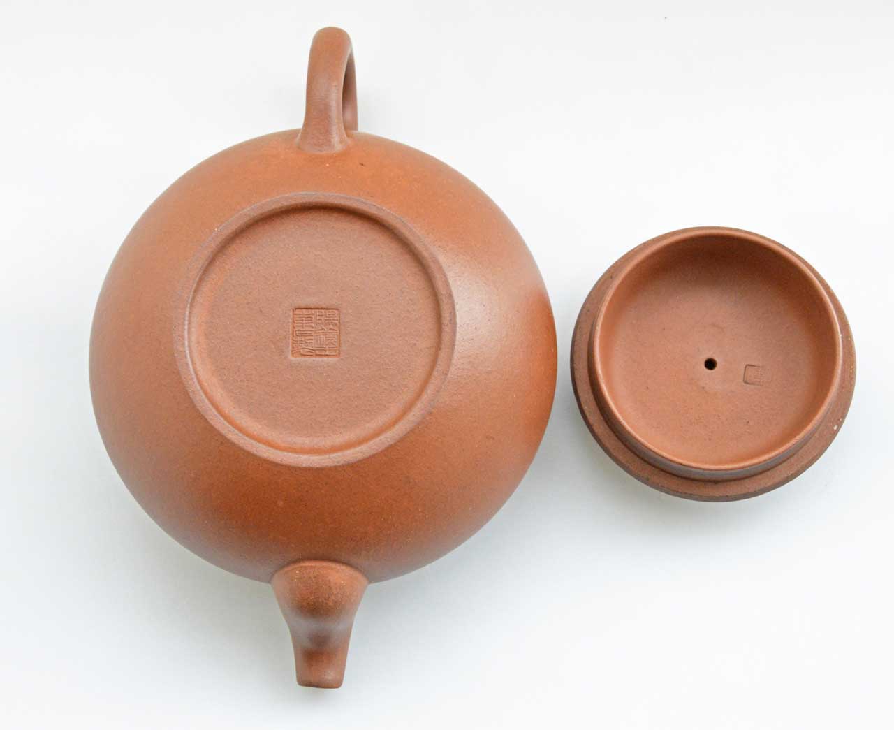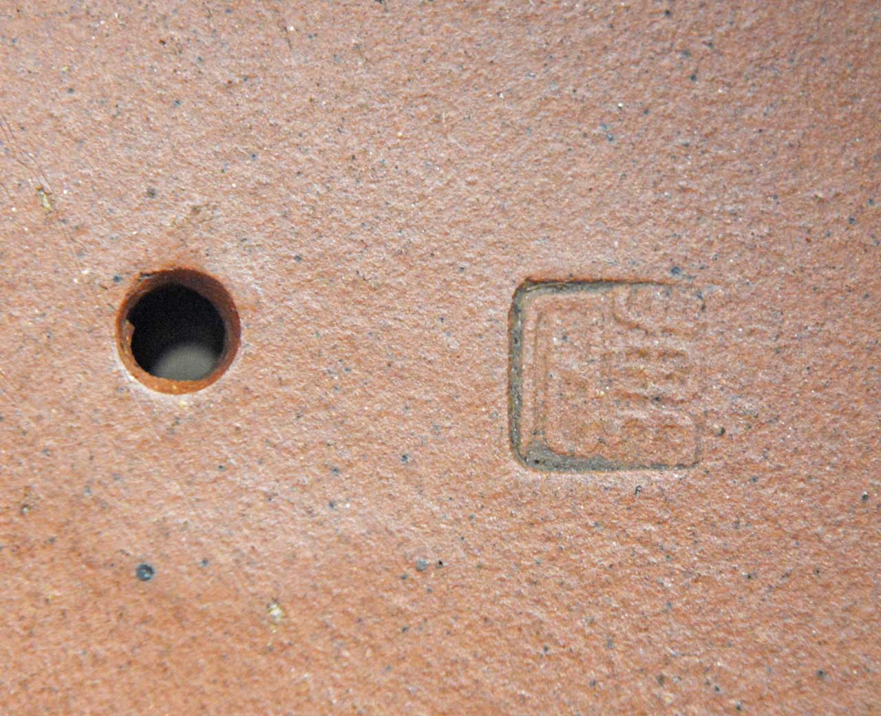 此壺乃唯一僅見的仿古壺修正版,壺嘴改為二彎流,壺紐改為平面圓形,壺蓋兩旁的壺身上銘有大篆金文「永寶用作之享、??萬年子子孫孫」,壺底款為「陽羨王東石製」,壺蓋內款為「東石」。